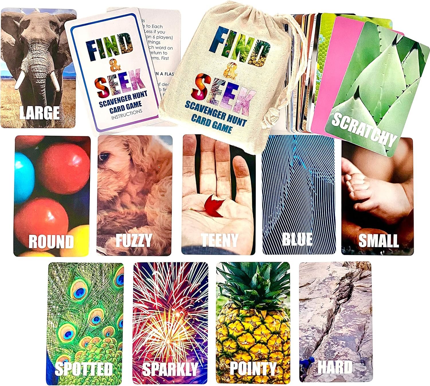 Fácil de jugar: El juego de cartas de caza del tesoro para niños pequeños de Hapinest es adecuado para niños de 3 años en adelante. Nuestro juego de búsqueda del tesoro incluye 35 tarjetas bellamente ilustradas y dos tarjetas de instrucciones, perfecto para la diversión en interiores y exteriores. Explorar y aprender: Cada tarjeta presenta una ilustración atractiva, que despierta la curiosidad y anima a los niños a descubrir cosas nuevas en su entorno, mejorando las habilidades de observación. Entretenimiento versátil: ideal para viajes, viajes por carretera y salidas familiares, este juego cabe perfectamente en su bolsa con cordón. Juegos de viaje perfectos para viajes en coche para niños para mantenerlos entretenidos y ocupados. Diversión para todos: diseñado como juegos para niños, actividades preescolares y para niños mayores, este juego promueve el juego activo y es ideal para actividades al aire libre para niños, lo que les permite interactuar con el mundo que los rodea. Experiencia atractiva y educativa: Diseñado para despertar la curiosidad y promover el juego activo, este juego de búsqueda del tesoro anima a los niños a explorar su entorno e interactuar con el ambiente, haciendo de cada sesión de juego una aventura única.