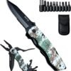 Actualización: las cuchillas son más afiladas que la versión anterior. El mango está reforzado con doble material y no es propenso a roturas después del refuerzo. El mecanismo de bloqueo de salvaguardia proporciona protección adicional Transporte diario Este artículo de supervivencia multiusos viene con una bolsa de nailon duradera. Es conveniente para llevar y usar a diario. La superficie del producto tiene un tratamiento de ennegrecimiento para evitar el óxido y la corrosión, asegurando la durabilidad Duradero y práctico: incluye cuchillo, alicates, abridor de botellas y juego de destornilladores 9 en 1 que proporcionan herramientas multifuncionales. Son suministros perfectos para caza, viajes, mochileros, senderismo, coche, pesca, aventura La mejor idea de regalo – Calcetines para hombre, regalos para papá, marido, novio, abuelo en Navidad, día de San Valentín, aniversario, cumpleaños, día del padre. A cualquier persona que reciba el cuchillo multifuncional SIUPRO como regalo le encantará Color y servicio al cliente: gracias a sus diversos colores de camuflaje, cada cuchillo es único y cuenta con un tono diferente, lo que hace que el color de tu mano sea absolutamente único. Si tienes alguna pregunta, no dudes en ponerte en contacto con nosotros Cada uno es un color de camuflaje único