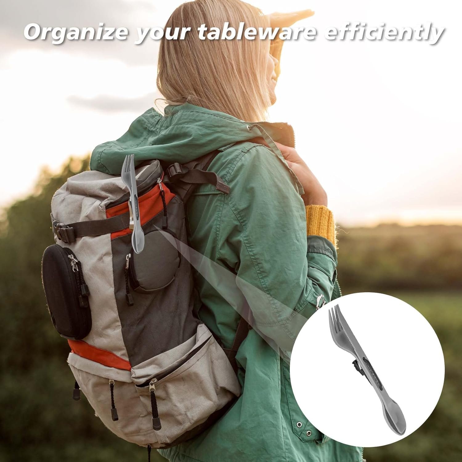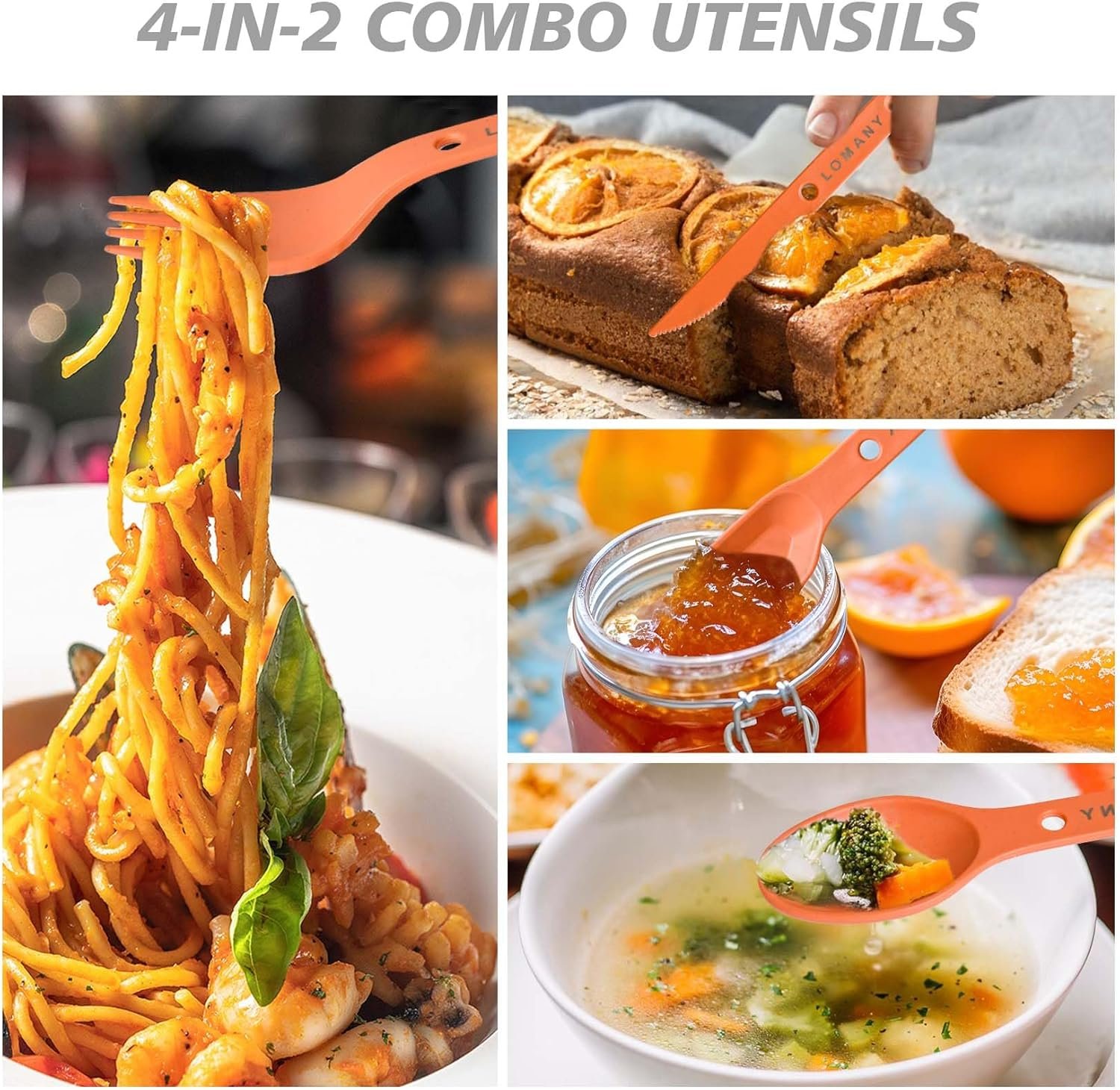 Juego de utensilios de camping reutilizables 4 en 2, 4 juego