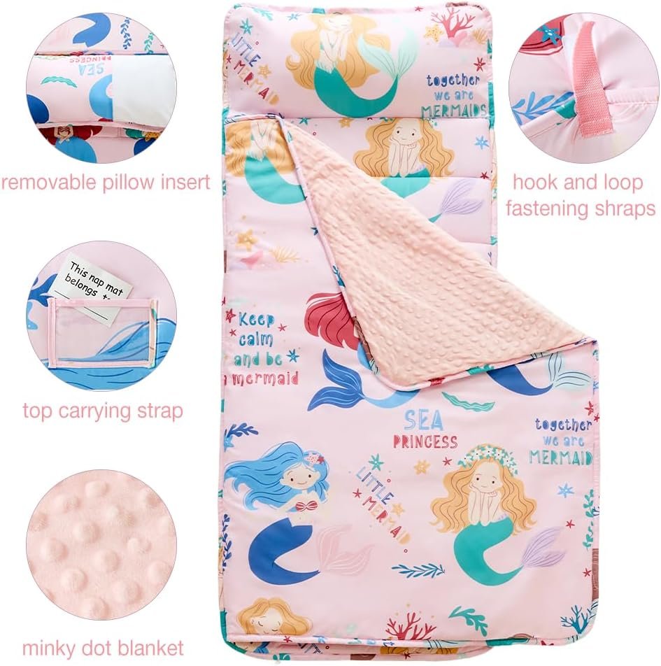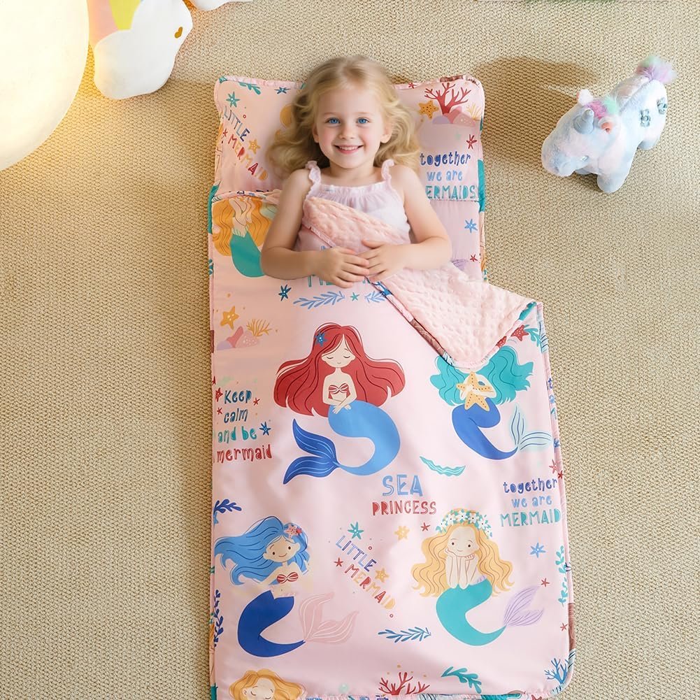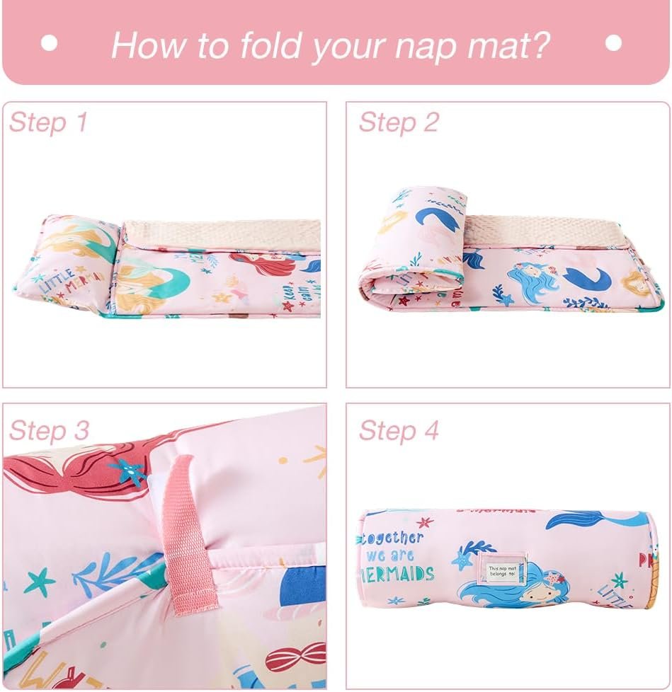 JUNCAI Tapete para siesta para niños pequeños con almohada e