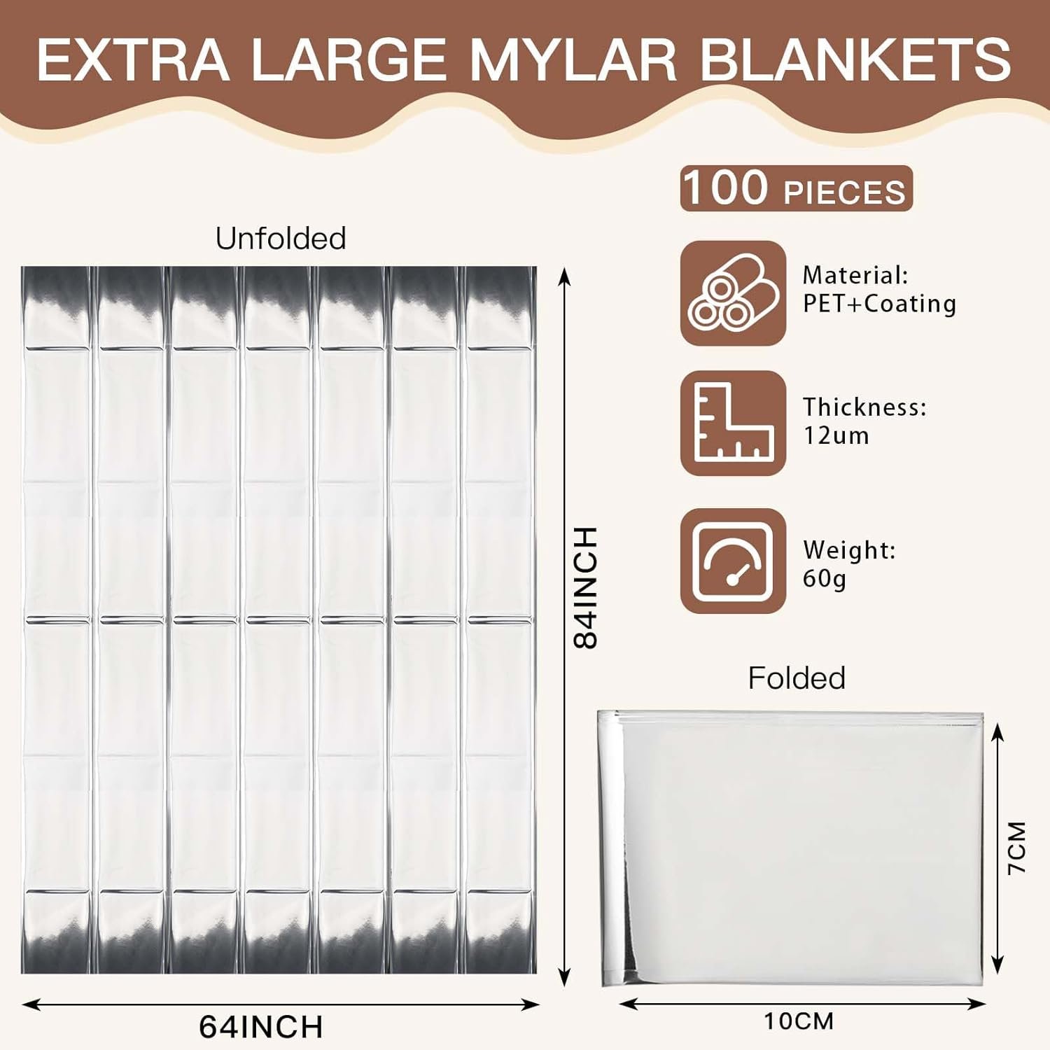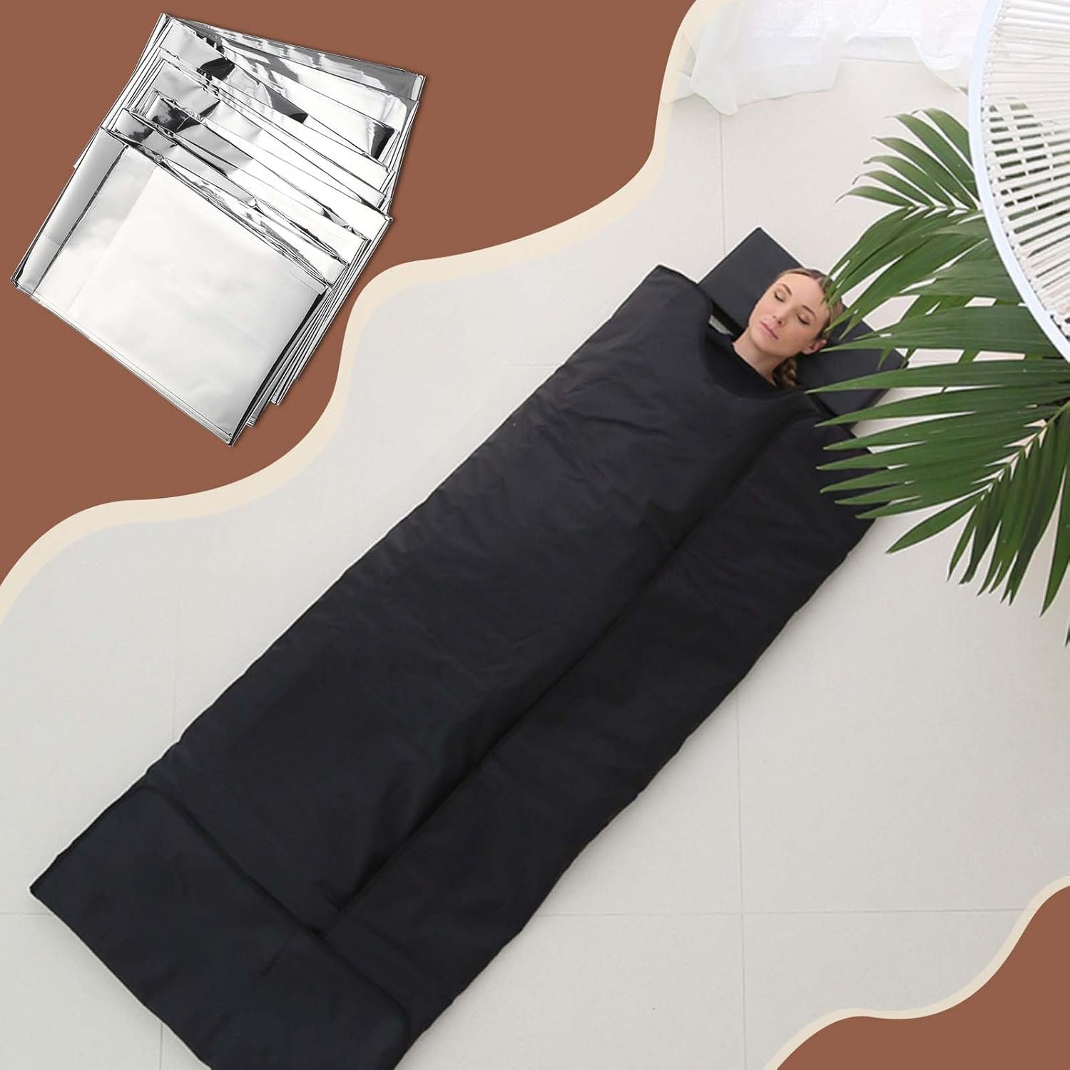 Material de calidad: el producto está hecho de película de poliéster de calidad, ligera fina y fácil de llevar, alta resistencia al desgarro, efecto ideal de conservación del calor, retiene hasta el 97% del calor corporal Uso compatible: el tamaño amplio puede envolver el cuerpo tanto como sea posible, adecuado para personas de diferentes tipos de cuerpo, úsalo con manta de sauna de infrarrojos lejanos para crear tu sauna portátil personal en casa Buen efecto: las características únicas de las mantas espaciales pueden satisfacer los elementos esenciales de la manta de sauna de hipertermia, la preservación del calor y la transpiración, para lograr el efecto ideal de sauna; también pueden aliviar el estrés, regular el estado de ánimo y tranquilizarte Ampliamente aplicable: además de aplicarse como sauna, nuestros productos también se pueden aplicar como artículos esenciales de emergencia para montañismo y camping, distribuidos a personas sin hogar, y almohadillas de aislamiento térmico para casa de gatos al aire libre