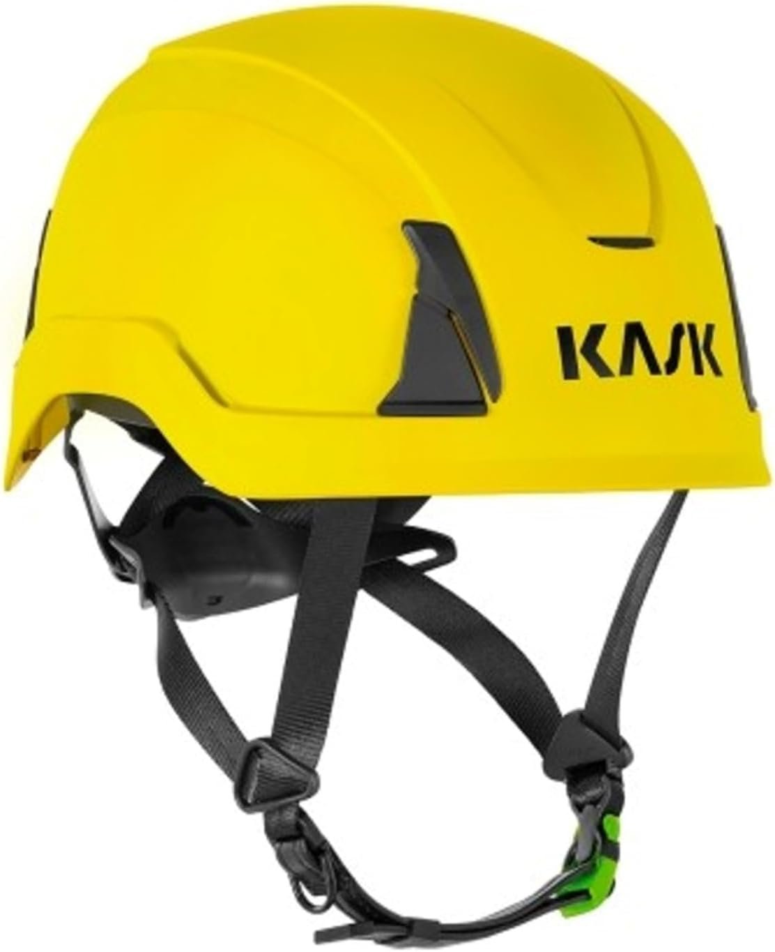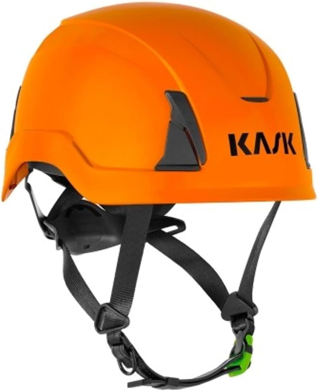 Carcasa exterior de POLIPROPILENO HD: Carcasa externa ligera con absorción de impactos óptima incluso a temperaturas inferiores (-30ºC) o superiores (+50ºC). Resiste el amarilleo y la degradación ERGO FIT SYSTEM: Un sistema de ajuste que se mueve hacia arriba y hacia abajo con soporte ergonómico integrado para la parte posterior del cuello para adaptarse a todos los tamaños de cabeza de 52 a 24.8 in CHINSTRAP LITE AVANZADO: 5 puntos de ajuste para un ajuste personalizado. Anillo para enganchar la correa de barbilla que fija de forma segura el casco a un arnés. El sujetador codificado por colores indica que cumple con la norma EN 12492 Ranuras para accesorios: ranuras Euro estándar de 1.181 in para fijar orejeras KASK. 4 clips de fijación de lámpara de nailon extraíbles. Sistema Easy Click de ranuras integradas para protección ocular y facial. Adaptadores necesarios Cumple con las normas ANSI Z89.1 TIPO I – CLASE E HT LT. Protección EN 12492 contra impactos laterales, delanteros y traseros. Capacidad de absorción de energía de choque (cláusulas 4.2.1.2 – frontal, 4.2.1.3 – lateral, 4.2.1.4 – trasera), Penetración (cláusula 4.2.2), Resistencia del sistema de retención (cláusula 4.2.3) y efectividad del sistema de retención (cláusula 4.2.4). Ensayos adicionales EN 397: 440V a.c. / -22.0 °F / LD / MM, EN 50365 (clase 0)
