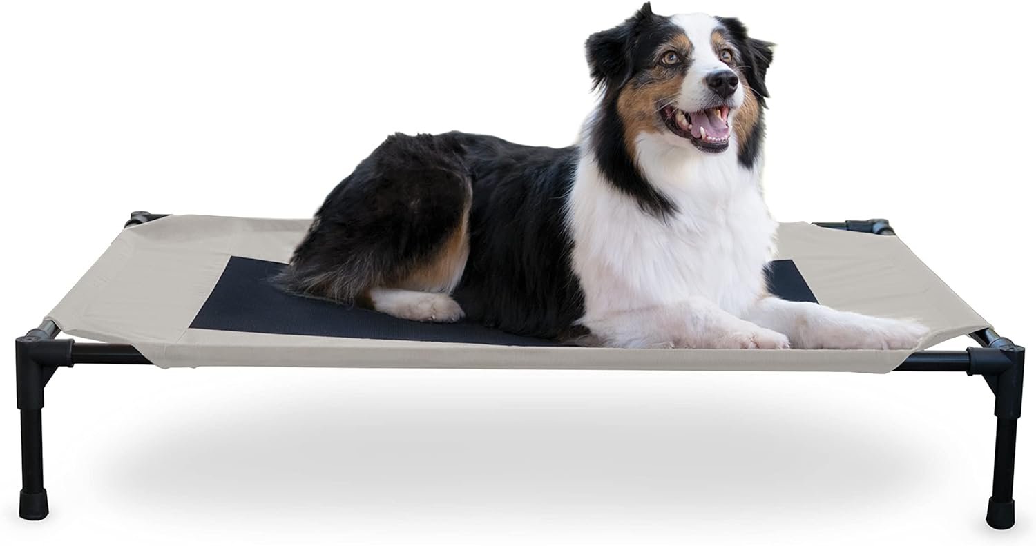 Componentes incluidos: K&H Pet Products Cuna elevada para perros para exteriores, hamaca elevada transpirable y refrescante para perros grandes, cubierta de malla lavable, marco de metal elevado, plegable, portátil, grande, 42 x 30 pulgadas, color gris pardo