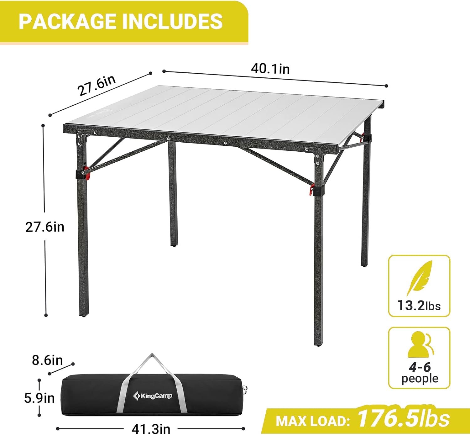 KingCamp Mesa de campamento plegable de aluminio, ligera, po
