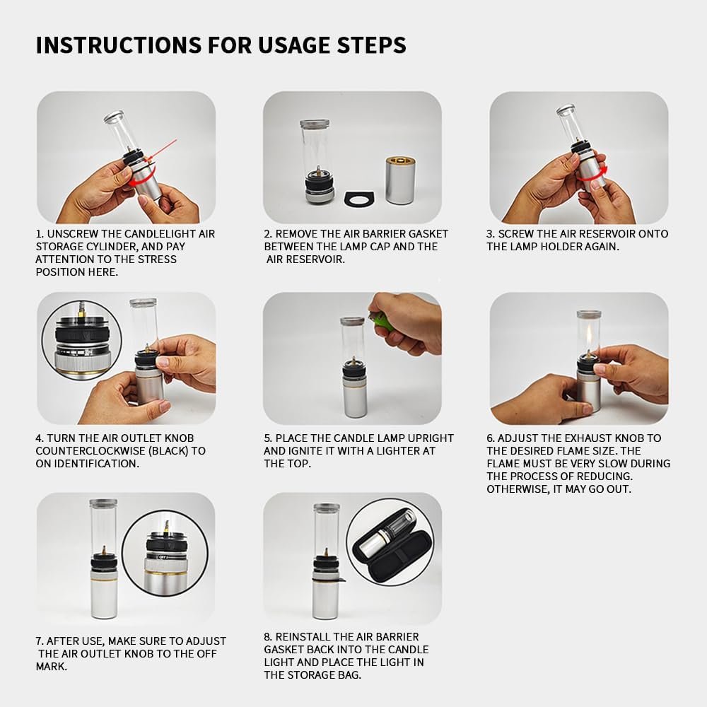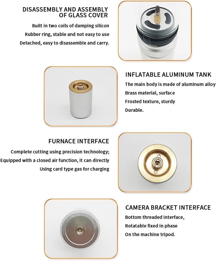 El paquete incluye: 1 lámpara de gas de campamento, 1 tanque de aire y 1 funda de almacenamiento. Tamaño: 3,8 cm x 15,6 cm. Hay una interfaz de soporte de cámara estándar en la parte inferior del tanque de aire, que se puede utilizar con un trípode. Perilla ajustable: nuestro método de encendido de linterna de tienda de campaña: encendido manual, impreso encendido y apagado del interruptor, fuego ajustable, ahorro de espacio y cómodo de usar. Ampliamente utilizado: la luz de campamento es adecuada para acampar, senderismo, pesca, picnic, playa, mochileros, viajes, escalada, exploración y otras actividades al aire libre. Material duradero: la cubierta de vidrio de borosilicato de alta calidad es resistente a altas temperaturas, material de aleación de aluminio resistente al desgaste, duradero, uso prolongado. Nota: la lámpara de camping no se utiliza en tiendas de campaña, automóviles o espacios cerrados interiores para evitar peligros. Para el primer uso, debe desmontar el tanque de aire inferior e inflar el tanque de aire. No está equipado con tanque de gasolina.