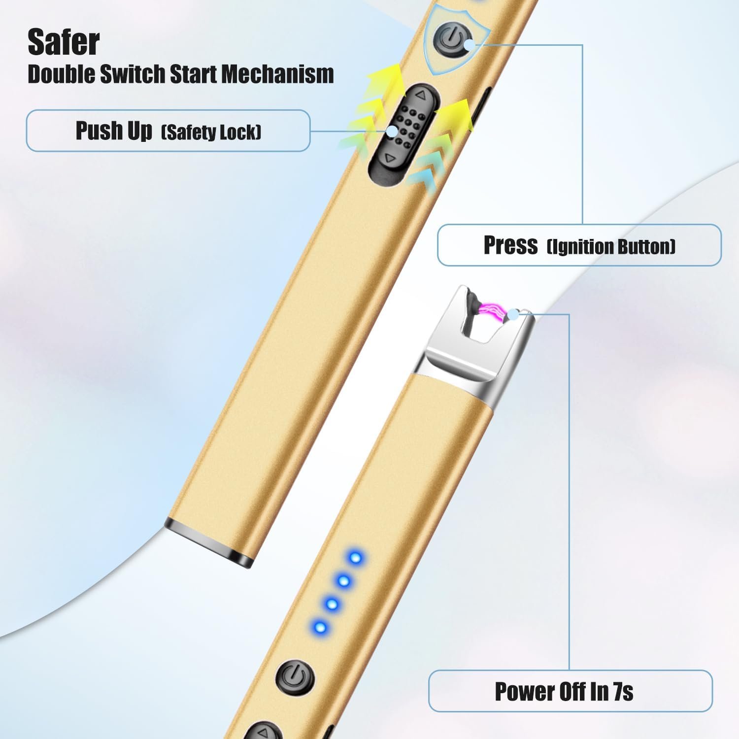 Seguro y eficiente mejorado: este encendedor de velas no solo actualizó la función de apagado automático después de 7 segundos para garantizar la máxima seguridad, sino que también agrega un interruptor de bloqueo de seguridad externo para evitar el encendido accidental. Encendedores de arco resistentes al viento sin gas o llama, te permiten encender velas, parrillas, estufas y mucho más de forma segura Pantalla de batería recargable por USB y LED: Tira esos encendedores desechables a la basura, disfruta de una vida más ecológica con nuestro encendedor recargable. La pantalla LED de la batería en tiempo real te permite saber siempre la potencia restante, solo una hora para la carga completa puede proporcionar más de 500 encendidos Exquisito y práctico: los encendedores de plasma no tienen llama y no producen olor acre. Los encendedores de velas no solo tienen un aspecto delicado y simple, sino que también tienen un diseño delgado que le permite iluminar desde la distancia. Es ideal para encender velas perfumadas, fuegos artificiales y estufas de gas Portátil y fiable: el encendedor de plasma eléctrico es compacto y ligero, fácil de meter en tu bolsillo o mochila, perfecto para viajes de campamento, fiestas de barbacoa, velas de iluminación y celebraciones de fuegos artificiales. Este versátil encendedor de arco es imprescindible para entusiastas del aire libre, usuarios domésticos y cualquier persona que necesite una herramienta de iluminación confiable El paquete incluye: recibirás una bonita caja que viene con: 2 encendedores; 2 cables de carga USB; 1 manual de usuario. Adecuado para regalar a tu familia y amigos. Si tienes alguna pregunta, sugerencia, necesidad, no dudes en ponerte en contacto con nosotros a tiempo, te responderemos pronto en 24 horas