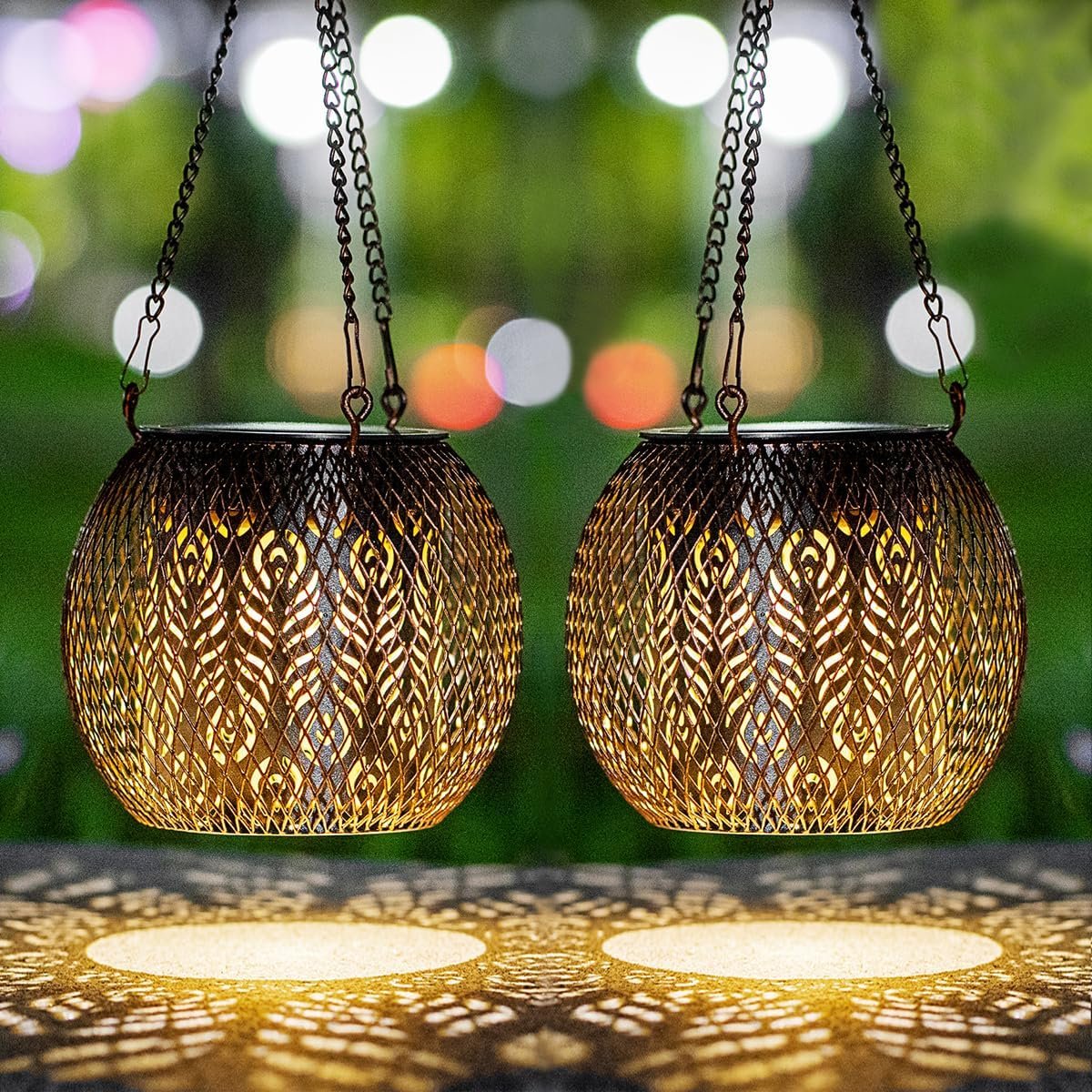 LeiDrail Paquete de 2 faroles solares colgantes para exterio