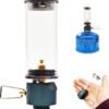 Diseño compacto y portátil: su diseño mini y ligero hace que esta linterna de gas sea increíblemente fácil de transportar, ya sea en su mochila o equipo de campamento. Además, viene con una práctica caja de almacenamiento para mayor protección y portabilidad durante tus viajes. Construcción resistente a la intemperie: Construida con aleación de aluminio resistente, cobre y acero inoxidable, esta lámpara de gas está diseñada para soportar condiciones exteriores mientras mantiene el rendimiento. Su cubierta de vidrio resistente al calor garantiza un funcionamiento seguro, por lo que es un compañero confiable para cualquier aventura al aire libre. Llama ajustable para una iluminación versátil: con una válvula ajustable, puede controlar fácilmente el brillo de la llama. Gira la tapa de cristal en el sentido de las agujas del reloj para obtener una luz más suave y romántica o en sentido antihorario para una llama más fuerte que ilumine tu camping de manera efectiva. Ambiente de ensueño en cualquier lugar: crea un ambiente mágico con nuestra linterna de gas, diseñada para mejorar tus experiencias de camping y senderismo. El efecto de lámpara de vela de ensueño emite un brillo cálido y acogedor que establece el estado de ánimo perfecto para la relajación y la narración de historias bajo las estrellas. Configuración sin esfuerzo con compatibilidad de tanque de gasolina: esta linterna es compatible con tanques de gas planos estándar para exteriores (tanques de gas no incluidos), lo que permite una configuración rápida y fácil. Ilumina tu espacio al aire libre sin esfuerzo y disfruta de horas de iluminación confiable dondequiera que estés.