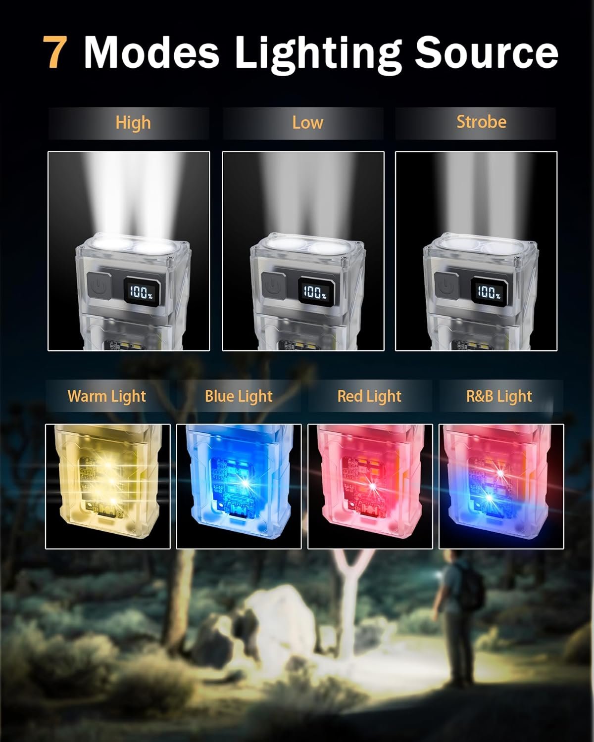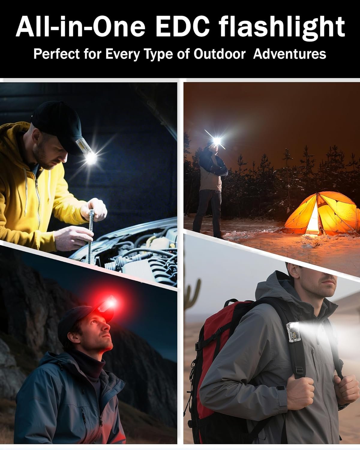 Potente fuente de luz dual mini linterna: Adoptando modos de linterna LED y linterna COB, con múltiples modos de iluminación. La luz principal es luz blanca fría con tres modos ajustables (bajo, alto y estroboscópico). Al presionar el botón del interruptor, es fácil cambiar de marcha. Mantén presionado el botón del interruptor para encender la luz LED lateral, que tiene cuatro modos ajustables (luz cálida, azul, rojo y azul rojo parpadeante), especialmente el modo intermitente para una asistencia más fácil en caso de peligro al aire libre Linterna EDC de carga rápida TIPO-C Esta linterna recargable tiene un diseño de botón simple y claro. Deslizarlo hacia arriba carga la linterna, lo que permite una fácil operación incluso en la oscuridad. Solo tarda 2 horas en cargarse completamente, y la linterna puede durar hasta 12 horas con el brillo más bajo. Con una clasificación de impermeabilidad IP68, puede soportar los entornos más duros Cabezal de lámpara giratorio de 90 grados y clip: el novedoso diseño de cabeza de lámpara giratoria y abrazadera permite un ajuste flexible de la dirección de iluminación, satisfaciendo diversas necesidades de escenarios y logrando iluminación multiángulo. Durante aventuras al aire libre, patrullas nocturnas, etc., cuando hay una necesidad de ver desde diferentes ángulos, simplemente gira el cabezal de la lámpara o la abrazadera para proyectar con precisión la luz donde se necesita, como en la exploración de cuevas, mantenimiento de la máquina, lectura, ciclismo y configuración de la tienda de campaña durante el campamento al aire libre Linterna magnética manos libres: El diseño manos libres le permite unirse a varias superficies metálicas como capotas de automóviles, marcos de vehículos, refrigeradores y puertas de hierro. En escenarios donde se necesitan ambas manos, como mantenimiento del vehículo, inspección de equipos y tareas domésticas, puede fijar la linterna en una posición adecuada para proporcionar iluminación, lo que le permite concentrarse en su trabajo y mejorar la eficiencia Linterna EDC recargable: Tesmax DC08 es una linterna pequeña y potente adecuada para el uso diario. Tiene múltiples modos de iluminación 7, con un lumen máximo de 850 lúmenes y una distancia máxima de irradiación de 328.1 ft. El tamaño es de 8,7 cm x 6,5 cm x 3,2 cm y el peso total es de solo 3.99 oz. Se puede poner fácilmente en bolsillos, mochilas o llaveros para un fácil transporte. Y nuestro producto soporta la función de luz nocturna, lo que te permite encontrarlo rápidamente incluso en entornos oscuros. Puede manejar fácilmente situaciones ya sea para acampar en la naturaleza, aventuras de senderismo o emergencias familiares