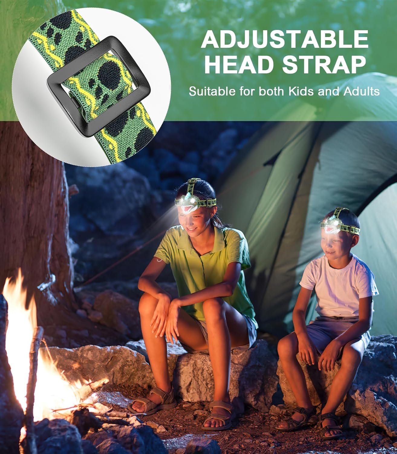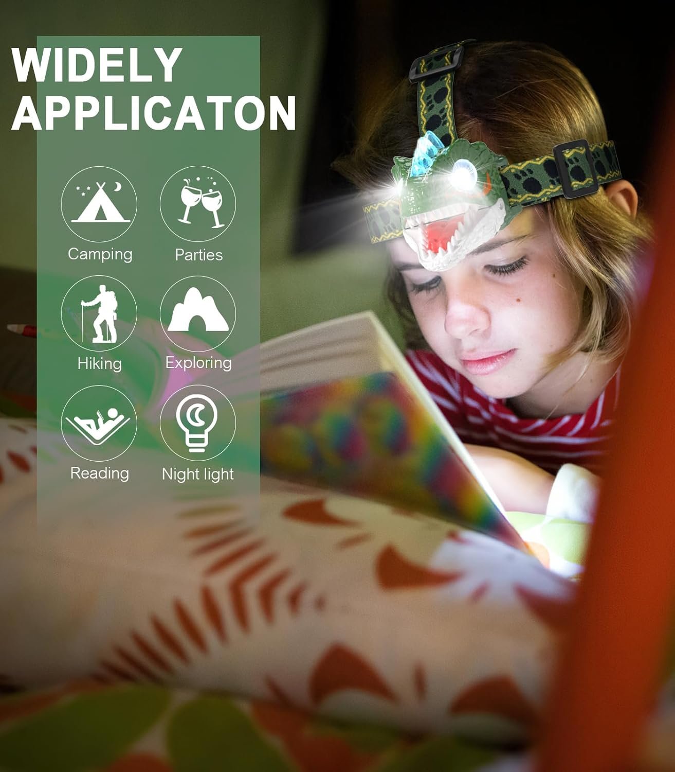 Linterna frontal para niños, linterna frontal LED de dinosau