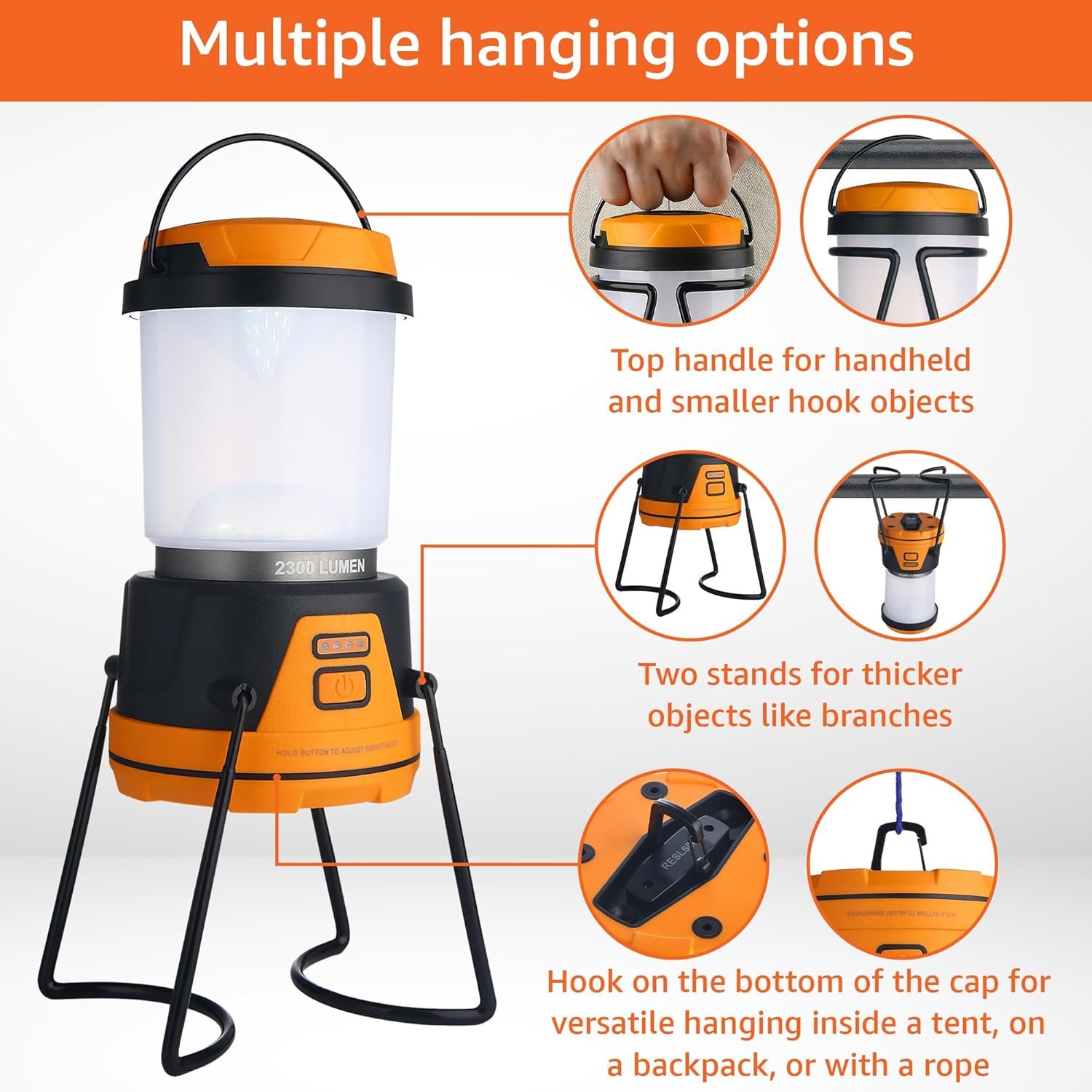 Iluminación ultrabrillante: esta linterna de camping está equipada con 48 bombillas LED SMD de alta calidad, ofreciendo un excepcional 2300 lúmenes de brillo. Las bombillas LED son reconocidas por su excelente brillo, eficiencia energética y larga vida útil, lo que garantiza que tengas una fuente de luz potente y duradera. Recargable y banco de energía: con una batería recargable incorporada de 5200 mAh, esta lámpara de linterna proporciona hasta 21 horas de iluminación continua con una sola carga. Además, la lámpara de huracán AYL funciona como un banco de energía, lo que te permite cargar tus teléfonos o tabletas en situaciones de emergencia y durante cortes de energía. Diseño resistente al agua: diseñada para soportar los elementos, la linterna AYL para cortes de energía es impermeable, por lo que es un excelente compañero para aventuras de camping y senderismo. La linterna está equipada con dos soportes plegables y antideslizantes que elevan la linterna en 8,3 cm, manteniéndola por encima del agua y lejos de áreas húmedas, ideal para navegar y pescar. Su durabilidad y resistencia al agua también lo convierten en un complemento esencial para tu kit de emergencia o supervivencia. Modos de iluminación versátiles: esta lámpara de linterna ofrece cinco modos de iluminación: luz diurna, luz cálida, una combinación de ambos, y un modo intermitente rojo. Excepto por el modo intermitente, todos los demás modos son regulables, lo que te permite ajustar el brillo a tu preferencia con una simple pulsación y retención del interruptor ON/OFF. Manejo seguro y cómodo: la lámpara recargable de larga duración AYL cuenta con un mango antideslizante para colgar sin esfuerzo e iluminación manos libres. Los soportes plegables lo elevan por 8,3 cm para evitar el agua y ofrecer estabilidad, por lo que es ideal para diversas actividades al aire libre como camping, paseos en bote y pesca. Consejo de mantenimiento de la linterna recargable: cargue la linterna cada 3-6 meses cuando no esté en uso regular. Pruébalo regularmente para garantizar un rendimiento confiable durante emergencias y actividades recreativas. La batería incorporada no se puede desmontar ni reemplazar. Para cualquier servicio o asistencia de garantía, por favor contáctenos.
