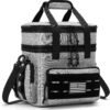 Diseño táctico Molle : un parche de resorte con dos anillos en D de la bandera de Estados Unidos (se puede quitar). Esta bolsa térmica aislada está diseñada con una mezcla de elementos Molle tácticos y al aire libre, 4 bolsillos laterales están hechos de malla y costuras de tela para permitir que la botella de agua se mantenga vertical. En el otro lado hay un bolsillo táctico con cremallera, diseñado para fijar cómodamente bolsas de almacenamiento, llaves, mosquetones, gafas de sol, cuchillo. Un parche en la zona del bolsillo frontal puede parchear diferentes parches que te gusten Gran capacidad expandible: la lonchera reutilizable mide 31,0 cm x 21,8 cm x 25,7 cm. Tamaño ampliado: 31,0 cmx 21,8 cm x 31,8 cm. Lo suficientemente grande como para adaptarse a 24 latas de coque de 11.2 fl oz. Diseñado con 2 bolsillos delanteros grandes y 1 bolsillo lateral grande de malla y 4 bolsillos laterales con cremallera. El compartimento principal se utiliza para almacenar alimentos, bebidas y frutas. Los lados de la lonchera pueden contener pañuelos, botellas de agua, aperitivos, paraguas y otras herramientas. Aislamiento y a prueba de fugas : el forro aislante ayuda a mantener tu comida fría o caliente a la temperatura adecuada hasta 8-12 horas. Mantiene las bebidas frías y los alimentos frescos, evitando la pérdida de nutrientes. Agregar paquetes de hielo tendrá un mejor efecto. El forro de aluminio grueso con excelentes materiales artesanales de prensado en caliente sin costuras, esta bolsa térmica 103% a prueba de fugas. Resistente al agua y fácil de limpiar: la capa exterior está hecha de tela Oxford resistente al agua. Protege tu almuerzo y cosas en el interior de poca agua o lluvia. El forro interior está hecho de forro de aluminio apto para alimentos que es fácil de limpiar y limpiar. Múltiples habitaciones satisfacen varias necesidades de almacenamiento, el diseño de almohadilla de plástico inferior puede evitar el desgaste y la suciedad inferior 3 maneras de fácil transporte: viene con correa de hombro desmontable ajustable de 160,0 cm de largo y asa de agarre cómoda, diseñada para tu comodidad cuidando el uso diario y uso multiocasión. Adecuado para trabajadores de la construcción, conductores, gente de negocios para el trabajo, un viaje por carretera, senderismo, camping en la playa, pesca, picnic.