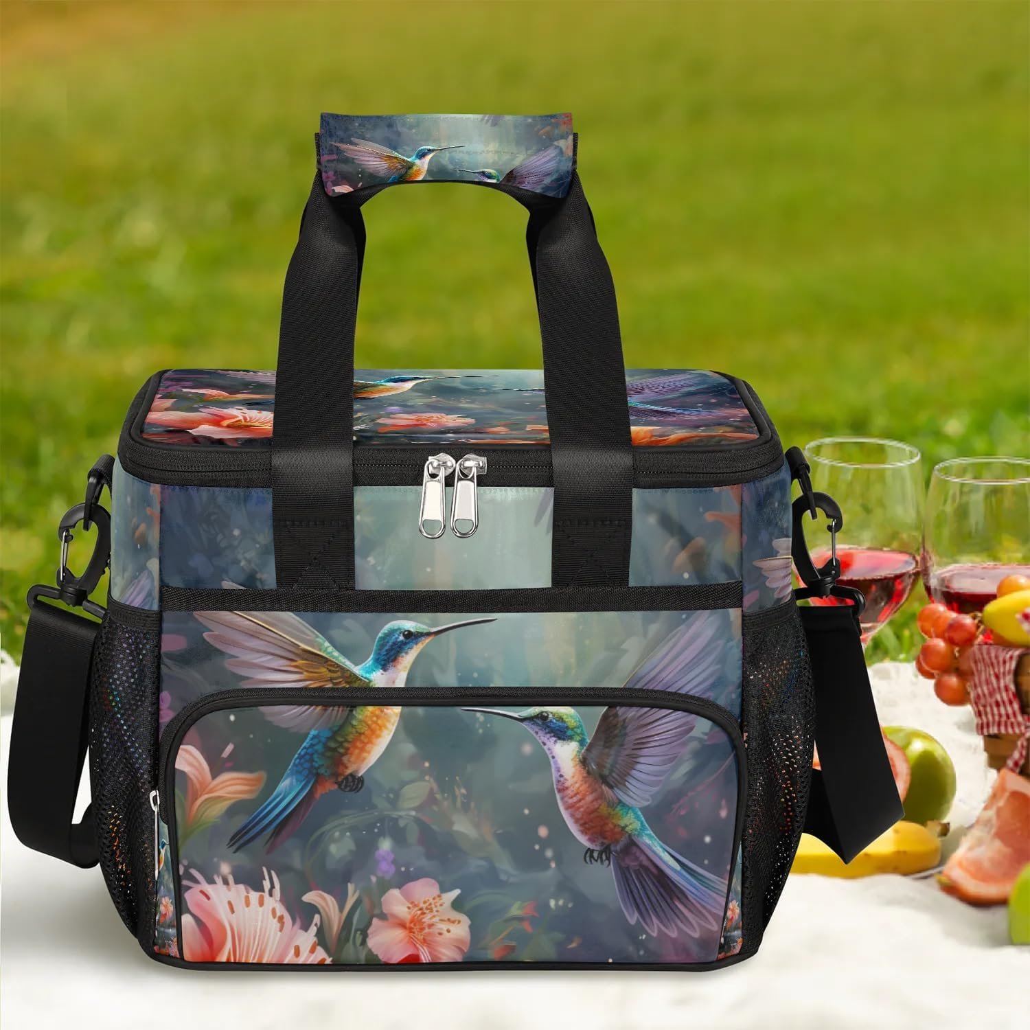Lonchera térmica aislada, con diseño de flores de colibrí, r