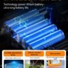 Descripción de la batería: Batería recargable de 6000 mAh, con carga solar o USB, proporcionando 5-24 horas de luz con una carga completa.