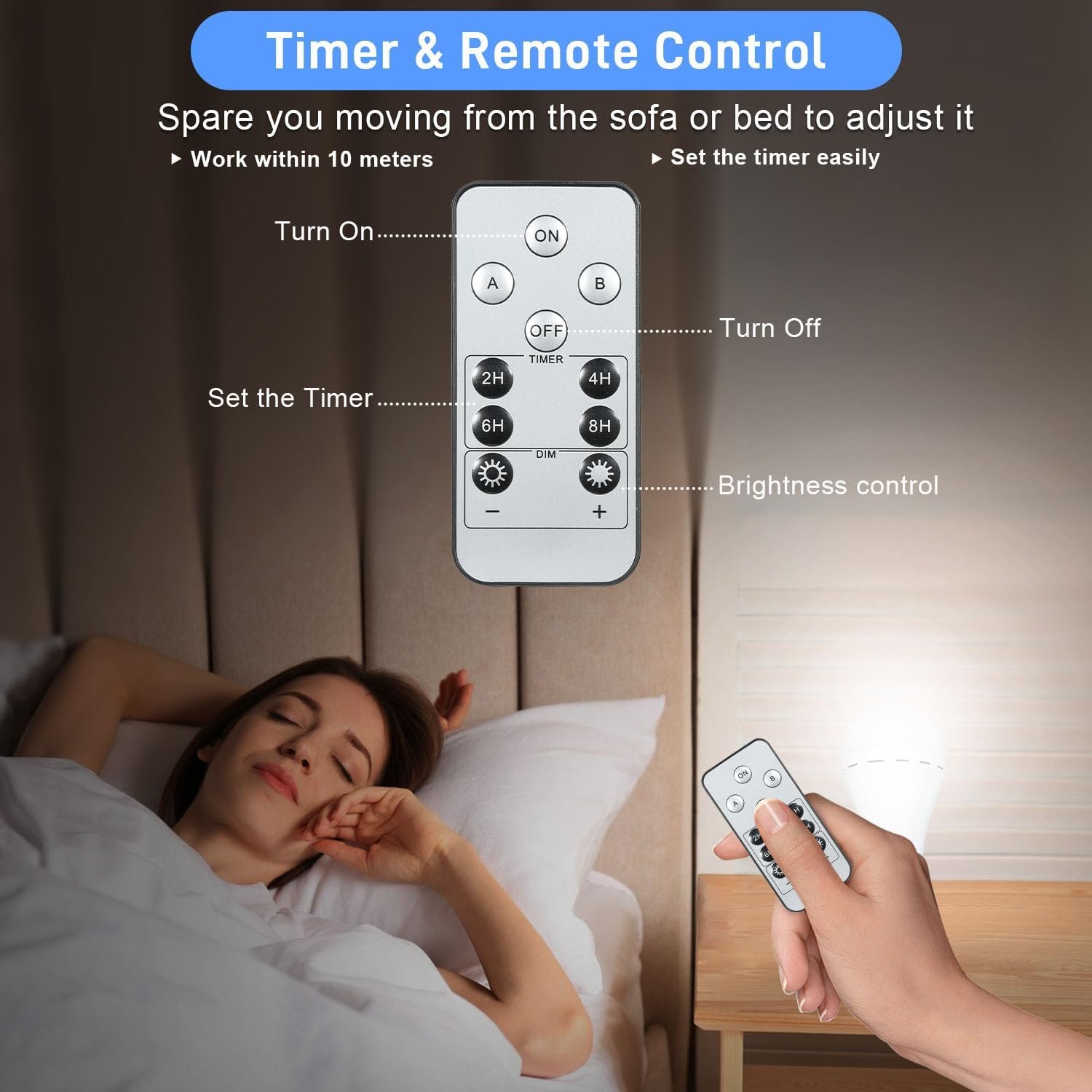 Características de la bombilla: Modo de emergencia SOS, del anochecer al amanecer, sincronización automática, juego de temporizador