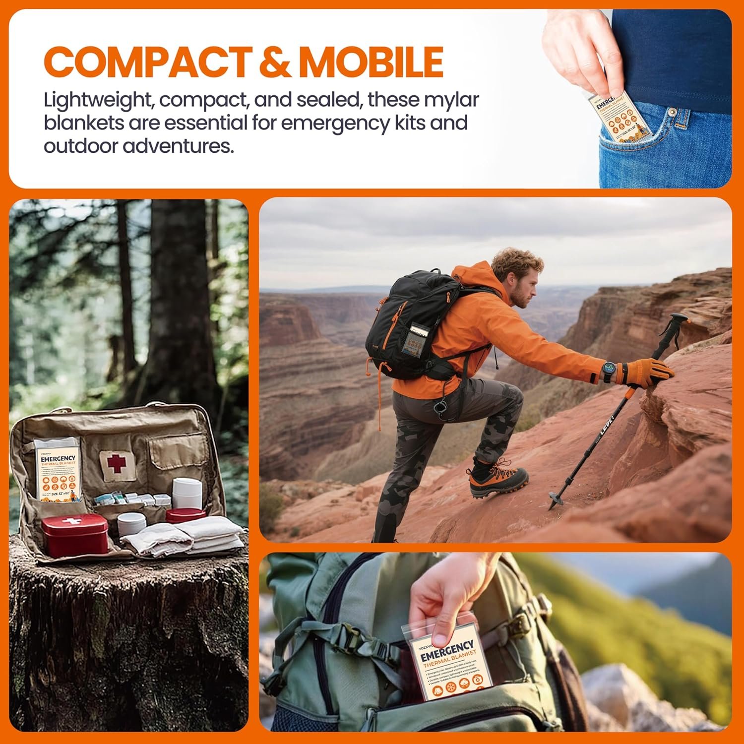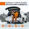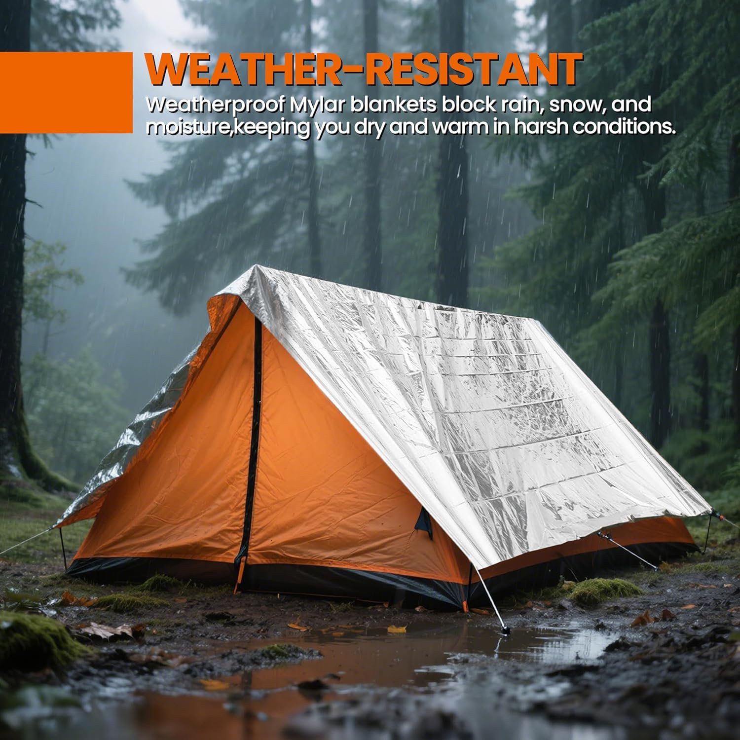 Estas mantas térmicas Mylar son impermeables y resistentes al viento. Ideal para varios escenarios de emergencia, incluyendo camping, senderismo y desastres naturales. 90% reflectante del calor: hechas de mylar aluminizado, estas mantas de emergencia retienen hasta el 90% del calor corporal, ofreciendo calidez esencial en situaciones de supervivencia. Ligero y compacto: se pliega al tamaño de una baraja de cartas, es fácil de almacenar en bolsas de insectos, mochilas, automóviles, kits de emergencia, kits de supervivencia o equipo de apocalipsis. Amplia aplicación: Úselos como cubierta del suelo, refugio o para proteger su equipo de los elementos. El paquete incluye mantas de mylar empaquetadas individualmente en 4 espacios. Tamaño: 208,3 cm x 132,1 cm (208,0 cm x 132,1 cm)