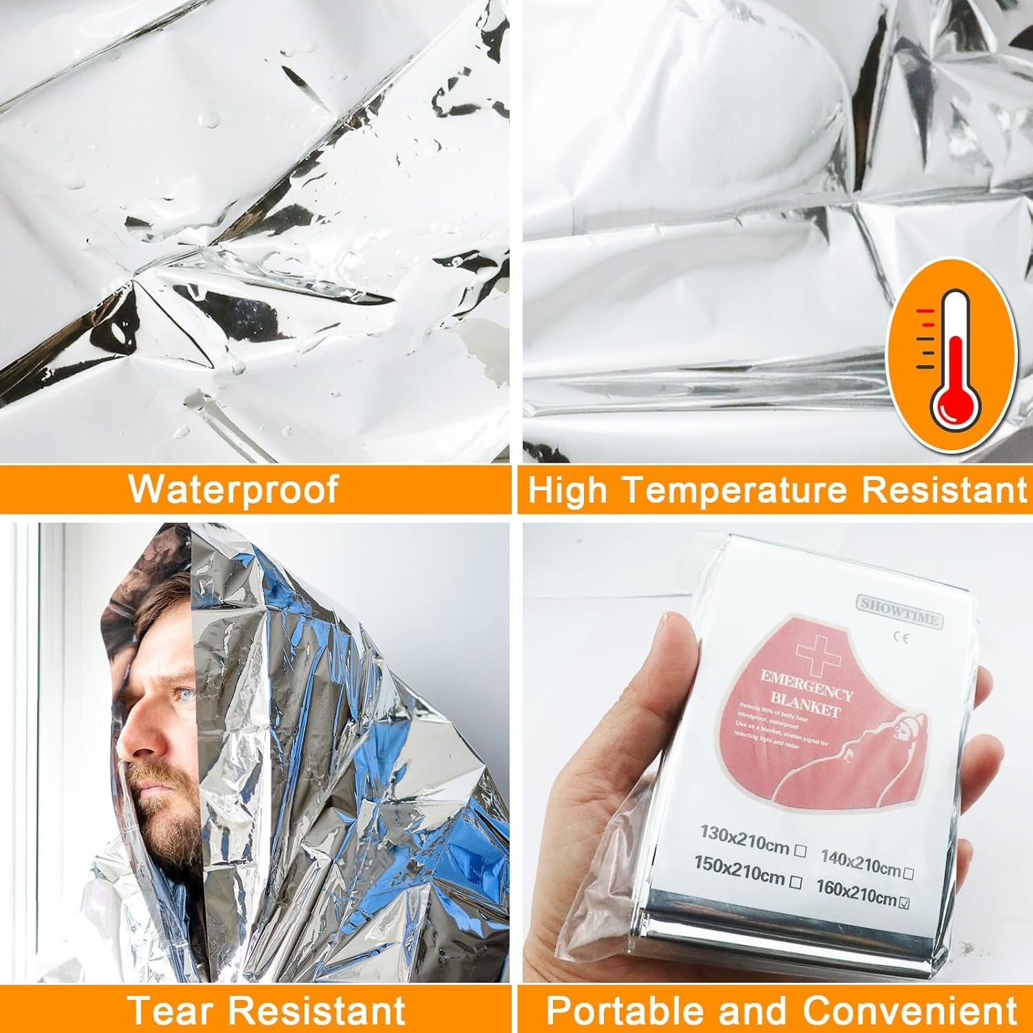 ArtCute Mantas de emergencia: viene con 8 mantas térmicas de emergencia empaquetadas individualmente. El tamaño de la manta térmica de mylar de emergencia es de 210,8 cm x 160,0 cm / 210,1 cm x 160,0 cm, manta de supervivencia masiva. Pueden cubrir mejor el cuerpo y retener la temperatura corporal, y son reutilizables para proporcionarte calor múltiple cuando sea necesario. Ligeras y fáciles de transportar: estas mantas espaciales de emergencia están plegadas, envueltas y selladas individualmente para un fácil almacenamiento y acceso, y se pueden poner en una mochila o bolsillo. Cada manta de mylar de emergencia tamaño del paquete: 15,2 cm x 7,6 cm, pesa aproximadamente 2 onzas. Material de buena calidad: nuestras mantas de emergencia para supervivencia están hechas de película de poliéster impermeable y resistente al viento para aislamiento o calidez. Puede almacenar calor y retener el 80% del calor. Al sobrevivir en la naturaleza, la capa interior puede mantener su propio calor y no se disipará en poco tiempo; la capa exterior es altamente reflectante, lo que facilita que los rescatistas la encuentren. Equipo de emergencia versátil: la manta de supervivencia de emergencia ArtCute está diseñada para proporcionar calidez, protección resistente al viento y al agua, y es un artículo imprescindible para senderismo, camping, carreras de senderos, maratón, bolsa de emergencia, bolsa de viaje y suministros de emergencia para el hogar y el automóvil. Ocasiones de uso: es muy adecuado para emergencias donde se necesita calor o mal tiempo, proporcionando la máxima protección en varias condiciones. Se puede utilizar como una tienda de emergencia, poncho de lluvia, tapete a prueba de humedad, material de aislamiento térmico, tela impermeable temporal, señal de emergencia, sombrilla, forro de saco de dormir, deflector de viento, funda de mochila, etc.