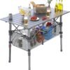 Altura ajustable: ajusta independientemente las patas para adaptarse a terrenos irregulares; nuestra mesa de camping cuenta con un diseño de altura ajustable con 4 patas extensibles, lo que te permite ajustar la altura de 53,3 cm a 73,7 cm. Esto garantiza que la mesa permanezca estable en cualquier superficie, satisfaciendo sus diversas necesidades. Fácil configuración y portabilidad: Simplifica el montaje y desmontaje con una bolsa de transporte para facilitar el transporte. A diferencia de las mesas que solo pliegan las patas, nuestro diseño permite que toda la mesa se pliega, incluida la mesa. El montaje tarda solo unos minutos, por lo que es muy fácil de empacar y llevar. Gran capacidad de almacenamiento: incorpore una espaciosa cesta de malla de almacenamiento debajo de la mesa de campamento para un fácil almacenamiento de juguetes, bolsas, aperitivos, bebidas y pequeñas herramientas de cocina. La cesta es fácilmente extraíble cuando no está en uso. Construcción robusta: la mesa de camping soporta hasta 100 libras, equipada con excelentes propiedades resistentes al agua, a prueba de óxido, resistentes a los arañazos y a las manchas. Ideal para desinfectar con limpieza rápida y enjuague, por lo que es perfecto para usar como mesa de cocina o comedor al aire libre. La mesa ofrece altura ajustable para adaptarse tanto de pie como sentado, proporcionando un amplio espacio para acomodar cómodamente hasta seis adultos. Uso versátil: perfecto para diversas actividades al aire libre como picnics, camping, salidas a la playa, barbacoas, fiestas, viajes en casa rodante y adecuado para entornos interiores. Si tiene alguna preocupación con la mesa plegable, no dude en comunicarse con nosotros para obtener ayuda.