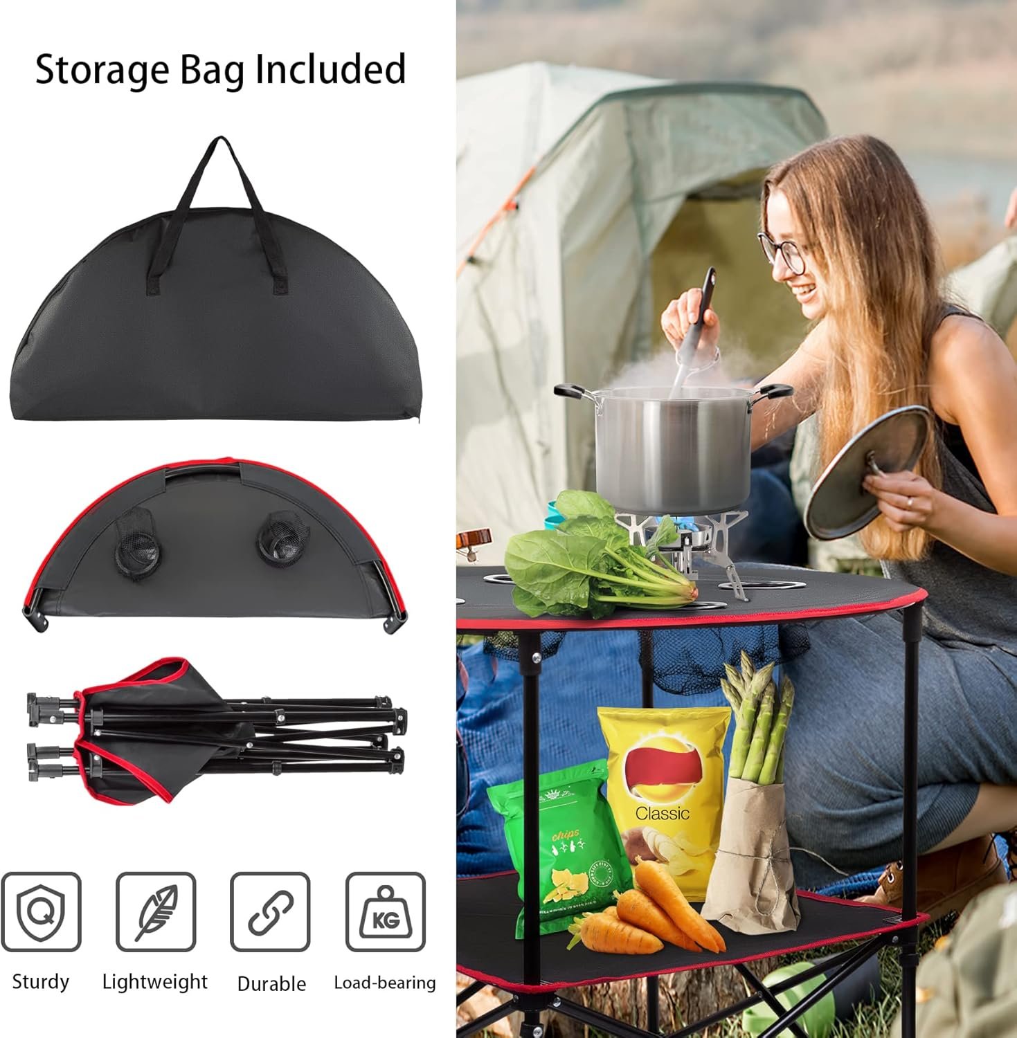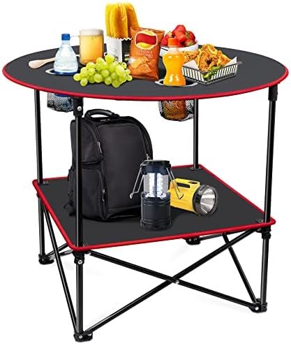 Mesa ligera y portátil: fácil de plegar y instalar, la mesa de campamento viene con una bolsa de transporte. Es muy práctico para salir, cabe fácilmente en automóviles, casas rodantes, la parte trasera de una motocicleta o las balsas fluviales. Serás la envidia de cualquier reunión al aire libre cuando saques tu mesa de camping plegable Capacidad de carga: la mesa plegable está hecha de lona impermeable de alta calidad y marco de aluminio. Puede soportar 55 libras de peso cuando se configura. Y con patas de goma antideslizantes, la mesa de playa puede mantenerse resistente y proporcionarte una mesa plana para actividades de campamento [Diseño práctico] La mesa de camping plegable tiene 4 portavasos y diseño de estante doble, puedes mantener el sol lejos de los artículos utilizando el estante inferior. Será genial tener la superficie adicional en tu mesa plegable para poner cosas y los soportes para bebidas pueden almacenar loción bronceadora, teléfono celular, juguetes, etc. [Duradero y resistente] Damos gran importancia a la durabilidad y robustez de la mesa de picnic portátil, la lona duradera y el marco de aluminio fuerte nos dan confianza. No como la mesa de metal completa, la mesa de lona tiene una vida útil más larga y no tienes que preocuparte de que los niños se lastimen por las esquinas afiladas de la mesa mientras juegan Multiusos: la altura de la mesa de camping plegable es adecuada para sillas de camping, tienda, por lo que puedes llevarla para acampar, pescar, fogata o como mesa de playa. Creemos que pasarás un rato feliz con nuestra mesa portátil. Además, si tienes alguna pregunta, el servicio de atención al cliente de Monsiter QE te proporcionará una respuesta satisfactoria y un servicio de por vida
