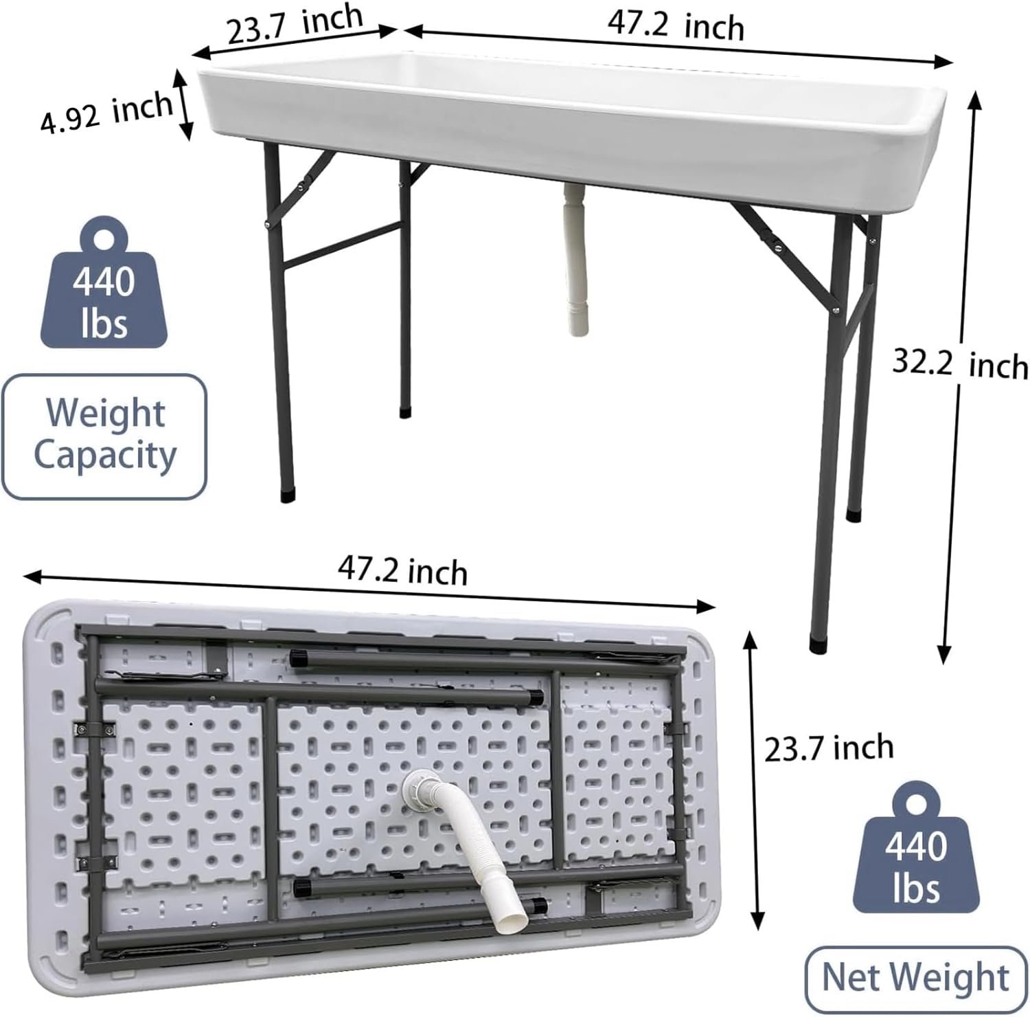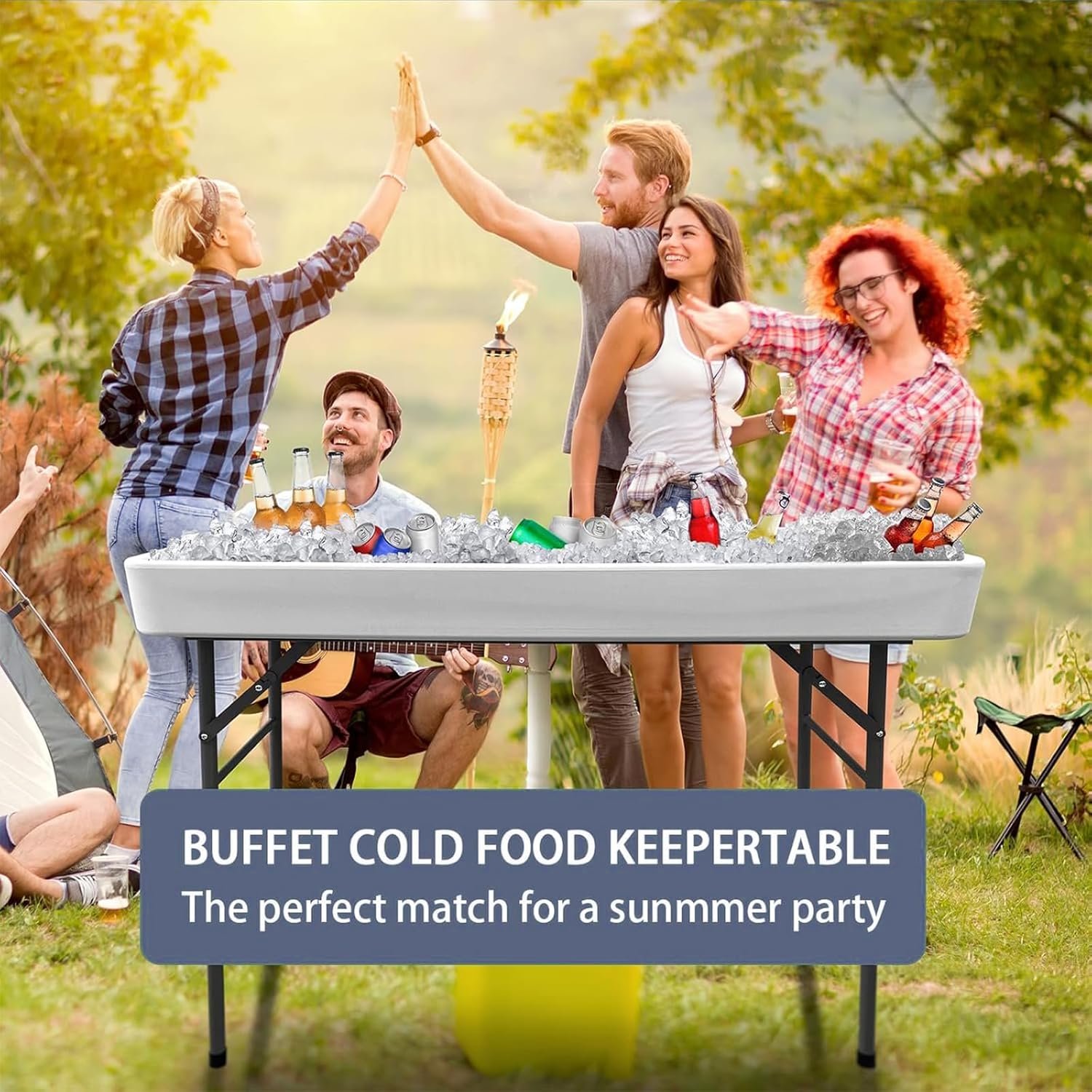 Diseño duradero y estable: esta mesa enfriadora de hielo plegable de 4 pies está diseñada para soportar el uso de mesas para fiestas, proporcionando una superficie confiable para todos tus eventos, desde fiestas en el patio trasero hasta picnics en el parque. Característica plegable conveniente: esta mesa de hielo portátil se pliega fácilmente para un almacenamiento y transporte rápidos, por lo que es una opción ideal para la estación de barman móvil o mesa de fiesta, incluso como una barra portátil para cualquier ocasión. Uso versátil: Perfecto para varios entornos, como reuniones familiares, fiestas o bar al aire libre, esta mesa sirve como una excelente adición a su colección de mesa de bar portátil para eventos y puede adaptarse a cualquier ambiente festivo. Estructura independiente para la frescura: diseñada para mantener tus alimentos y bebidas frescas, nuestra mesa enfriadora de hielo mantiene eficazmente la frescura, asegurando que tus bebidas estén siempre frías y listas para disfrutar durante las reuniones. Fácil de limpiar y mantener: Los materiales utilizados en la construcción de esta estación de bar portátil están diseñados para una limpieza rápida, asegurando que pueda disfrutar de su evento sin preocuparse por el desorden.