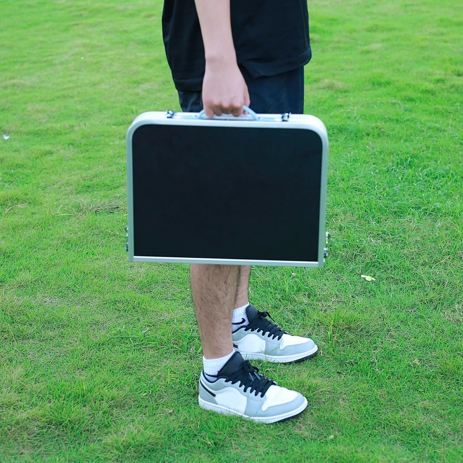 Dimensiones generales: esta mesa de picnic mide 61,0 cm de largo x 40,6 cm de ancho, 3 alturas: 10 a 48,3 cm y 61,0 cm de alto con las patas ajustables. El tamaño del paquete es de 40,6 cm x 30,5 cm x 7,6 cm cuando está plegado por la mitad. Una bonita mesa corta compacta, ideal para acampar por tierra Diseño pensado: la pequeña mesa de aluminio con parte superior de MDF de alta calidad, marco de aleación de 0.984 in de diámetro más grueso. Peso de 5.5 libras, capacidad de peso de 70 libras. Todas las extensiones de 4 patas tienen pies ajustables para nivelar en el suelo o añadir una cm de altura Almacenamiento adicional: la mesa en sí tiene un gran soporte de malla debajo de la mesa. Esta característica permite que la mesa pueda contener muchos artículos, incluyendo bebidas, aperitivos, libros, utensilios, juegos, teléfonos y 2 ganchos en S para guardar herramientas de cocina, llaves, altavoces ang, bolsas y mucho más Estable y compacto: mesa de camping plegable y levantable para exteriores. Muy práctica. Se puede utilizar para la mesa de campamento exterior para picnics después de levantarse, y mesa para portátiles poner en la cama después de bajar. Muy estable. No se agita Cómodo de usar: nuestra mesa plegable es fácil de montar y versátil tanto para interiores como exteriores. Ya sea en el patio, como disfrutar de café en casa, camping, picnic, fiesta de bloque, obras de arte para niños, es ideal para cualquier espacio y ocasión
