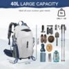 Mochila de senderismo, mochila impermeable de 40 L con panel