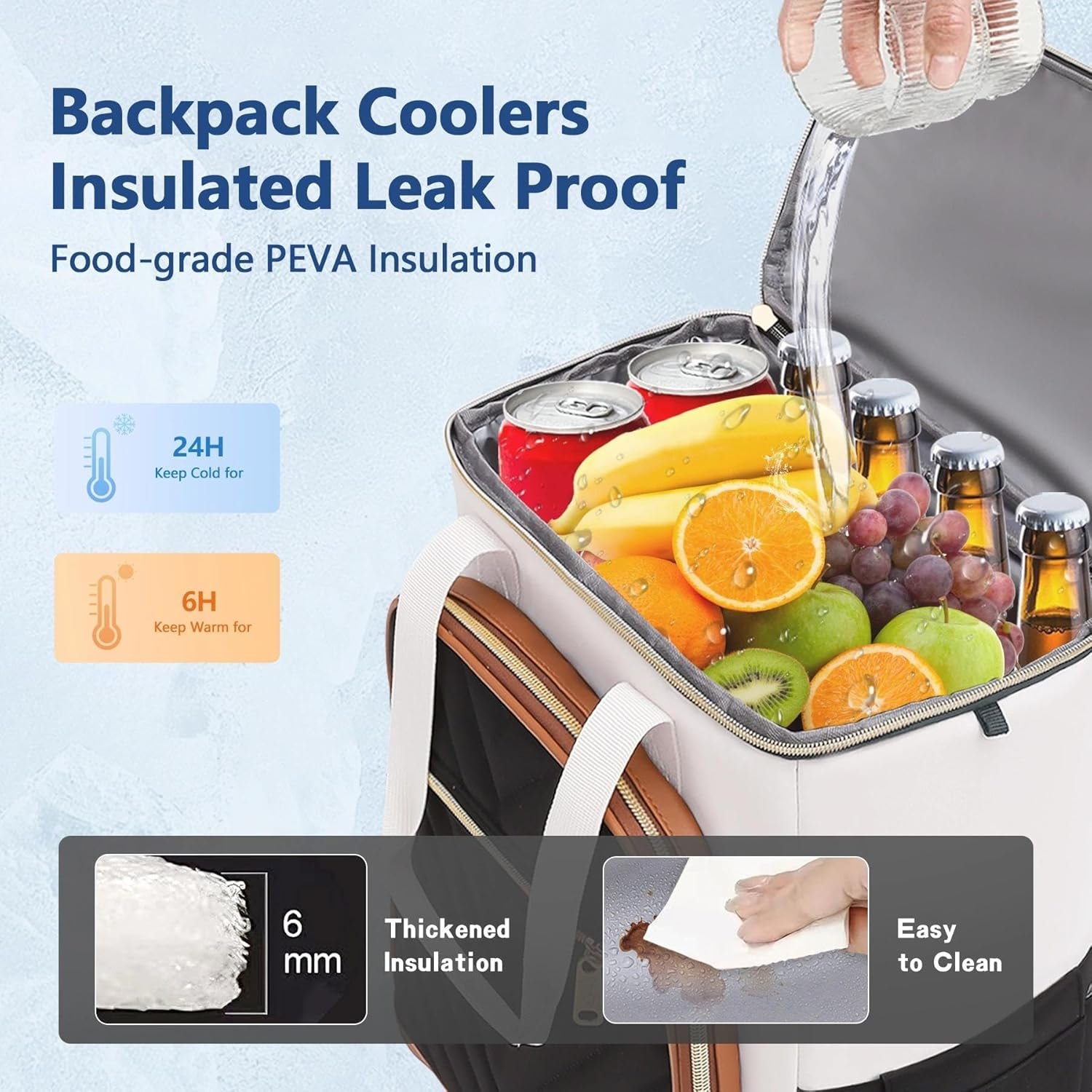 Enfriador de mochila a prueba de fugas: la mochila cuenta con forro impermeable de PEVA sin costuras + cremalleras de doble sellado para una protección de 360°. La base a prueba de condensación evita que la humedad mantenga las bebidas heladas durante 12 horas sin derrames de condensación. No más ropa empapada Bolsa térmica aislada: frío de grado ártico. Nuestras bolsas térmicas aisladas se bloquean en el frío durante más de 24 horas con barreras térmicas de grado militar. Se mantiene 50.0 °F más frío que las bolsas normales: tu helado se mantiene recogible, tus cervezas permanecen heladas Enfriadores de mochila de gran capacidad: 11.02* 6.30* 14.96. Esta mochila enfriadora aislada a prueba de fugas incluye un compartimento principal de 35 latas, además de bolsillos laterales de acceso rápido para bebidas y un bolsillo frontal para aperitivos. Almacenamiento listo para la aventura sin el volumen Enfriador de mochila duradero e impermeable: construido para la naturaleza – Ligero como una mochila, resistente como un Yeti. Nuestra mochila térmica aislada impermeable cuenta con exterior Oxford 600D ripstop y correas ergonómicas, caídas sobrevivientes, patadas y aguaceros. Lleva 30 libras de hielo con una mano, listo para la aventura en segundos Mochilas enfriadoras de múltiples funciones: desde enfriador de playa hasta almacenamiento médico de emergencia, esta mochila enfriadora para mujeres se transforma perfectamente entre una caja de hielo de fiesta, refrigerador de camping, bolsa de comestibles y portador de vacunas, versatilidad escalofriante en su máxima expresión