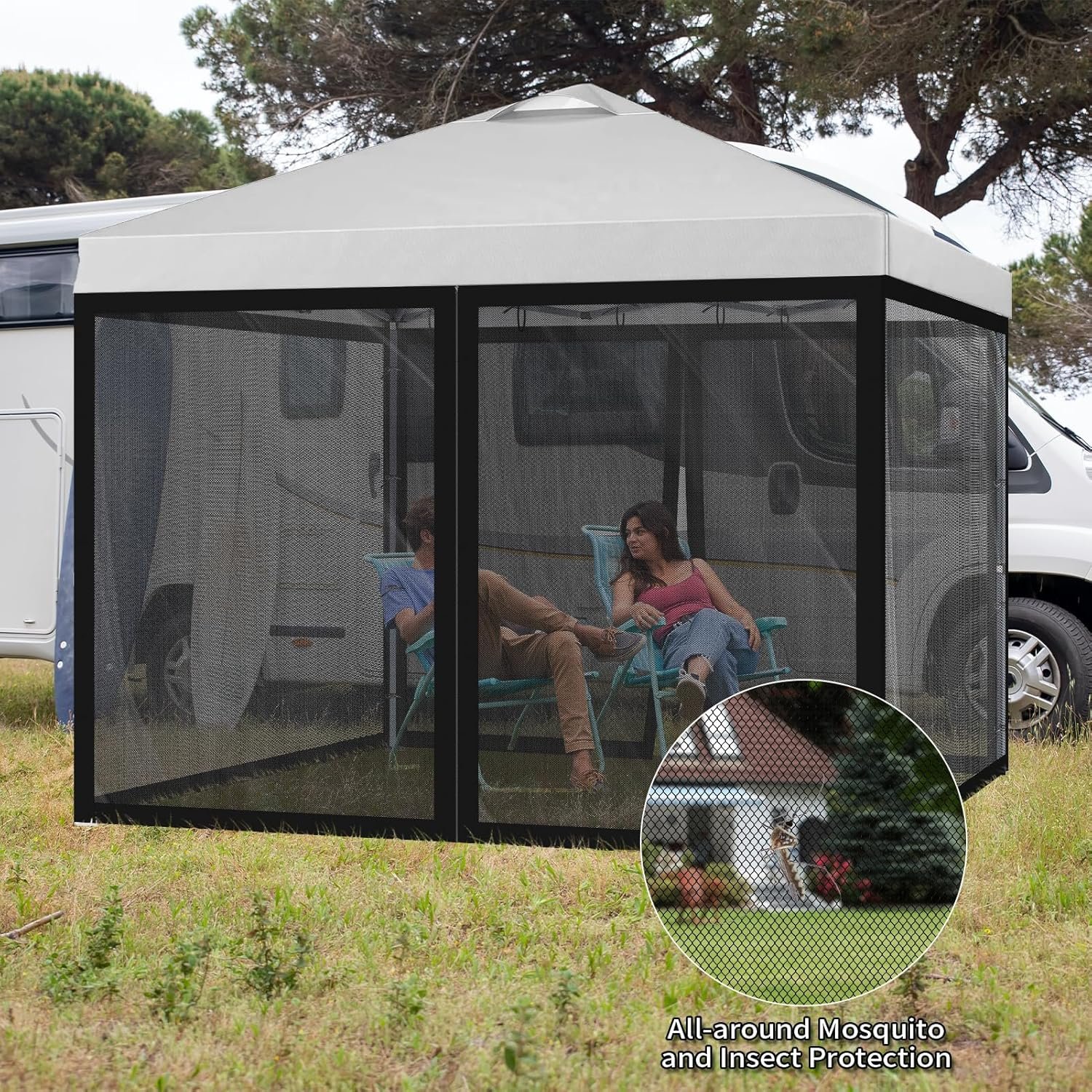 Ajuste preciso para cenadores de 10 x 10 pies: esta mosquitera está diseñada específicamente para cenadores cuadrados de 10 x 10 pies con una altura de 7.1 pies (218,4 cm). Con una apertura con doble cremallera para un acceso suave, ofrece cobertura completa y protección para tu espacio al aire libre. 32 puntos de amarre seguros para una sujeción fuerte: incluye 24 lazos superiores para asegurar el toldo uniformemente, 4 lazos en las esquinas para apoyo adicional en cada poste y 4 lazos de cortina cosidos para recoger perfectamente la red cuando no esté en uso. Proporciona una configuración apretada, elegante y resistente al viento. Tela Oxford 300D + revestimiento de PA: fabricado con tela Oxford 300D gruesa y forrada con revestimiento de PA, que ofrece una mayor durabilidad y forma. Resistente pero flexible, conserva la estructura mientras cubre naturalmente para una mejora refinada de la glorieta. Malla y tela a juego Disponible en dos elegantes colores: tela negra con malla negra y tela caqui con malla caqui. La paleta de colores consistente garantiza una adición perfecta y elegante a cualquier entorno de patio trasero. Puertas con doble cremallera y malla ventilada: con dos puertas frontales con cremallera para una fácil entrada y salida, y malla fina que mantiene a los insectos fuera sin bloquear el flujo de aire. Ideal para cenar al aire libre o relajarse con tranquilidad.