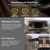 Características especiales: A prueba de lluvia, A prueba de viento, Instalación rápida, Protección UV, Resistente a la nieve