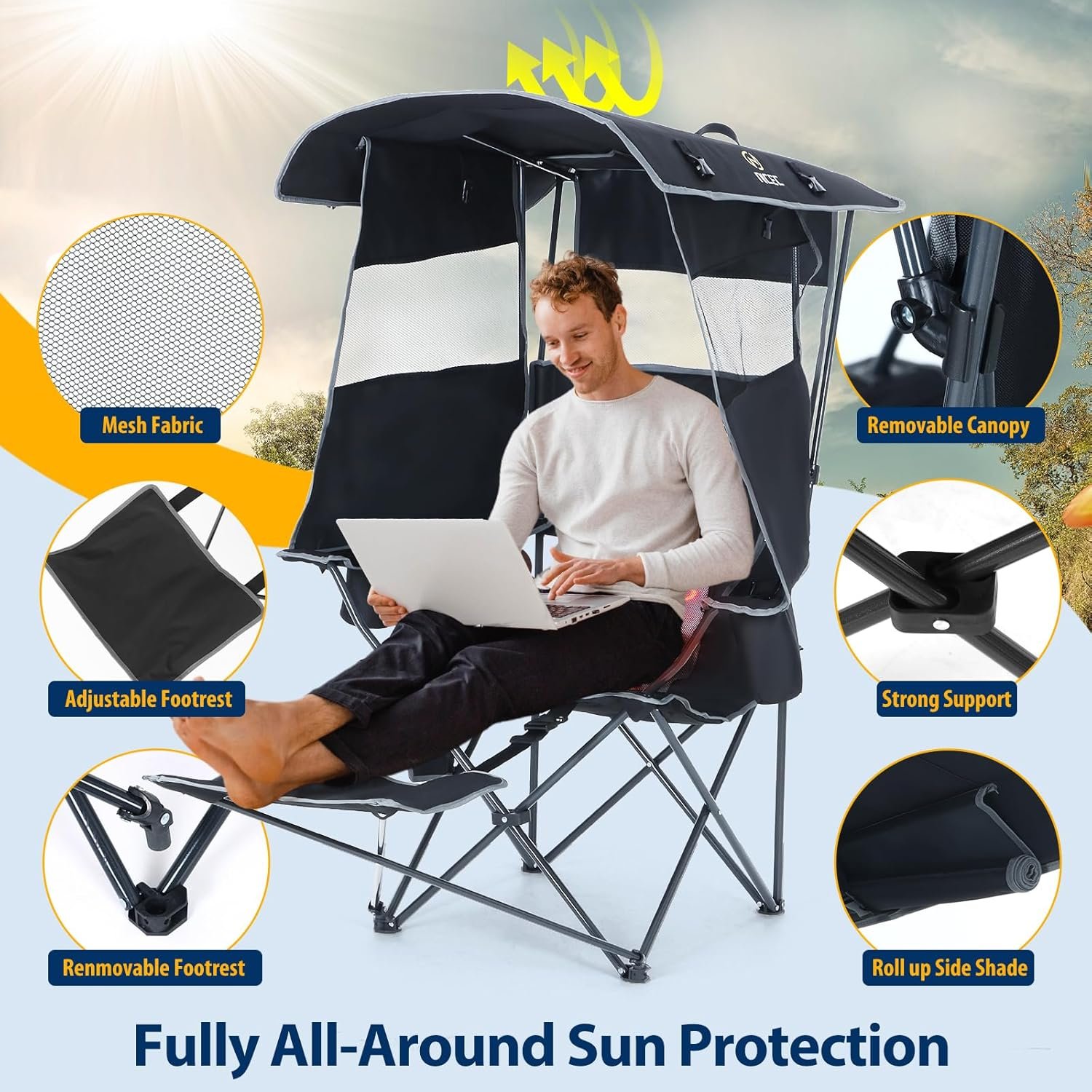 Nice C Silla con toldo, silla de camping climatizada con bat