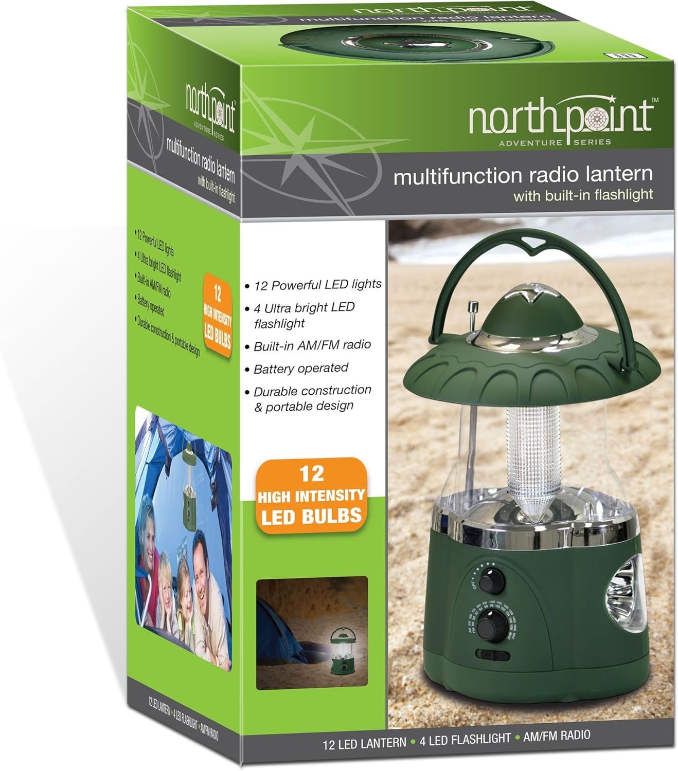 Multifuncional: la pieza insignia de Northpoint viene con varias funciones, una delicia de los campistas, la pieza tiene compatibilidad AM/FM, 12 faroles LED lo suficientemente brillantes como para iluminar tu camino y una linterna de 4 LED No requiere cableado Funciona con pilas: La pieza requiere 3 baterías cmD cm para funcionar, por lo que es portátil y fácil de usar. No requiere cableado desordenado Anillo para colgar: la linterna de emergencia Northpoint viene con un anillo para colgar, por lo que es fácil de instalar mientras estás en viajes de campamento o al aire libre Bombillas LED de alta intensidad: con un total de 16 LED de alta intensidad, el proceso de la linterna será el líder en el mercado, superando a otras linternas en términos de funcionalidad, longevidad y facilidad general de uso 3 colores diferentes: la radio multifuncional de emergencia viene en tres colores diferentes, blanco, negro y verde marino Linterna de 12 ledes Ultra brillante Linterna de 4 ledes Radio Am/FM incorporada