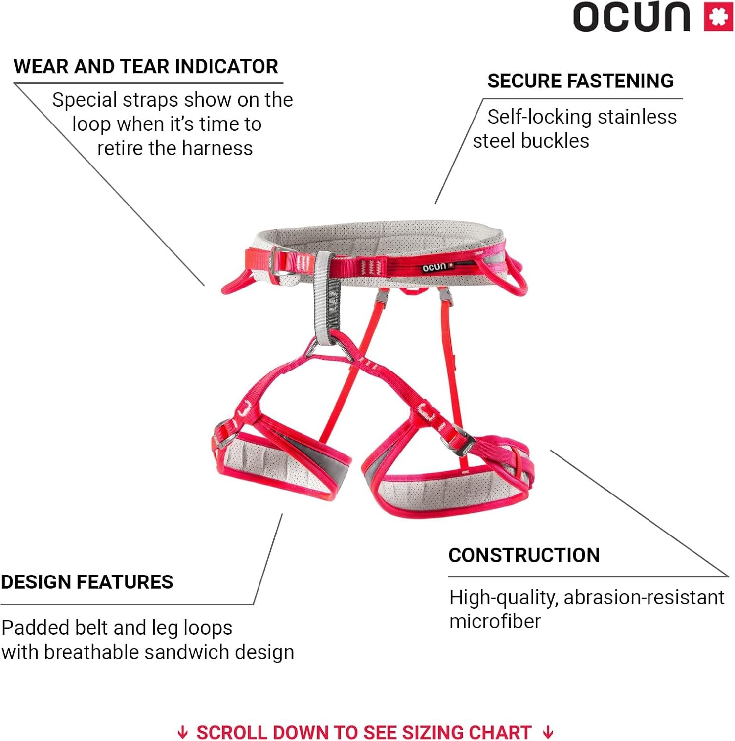 Ocun Neon 3 Arnés deportivo de escalada para mujer, ligero,