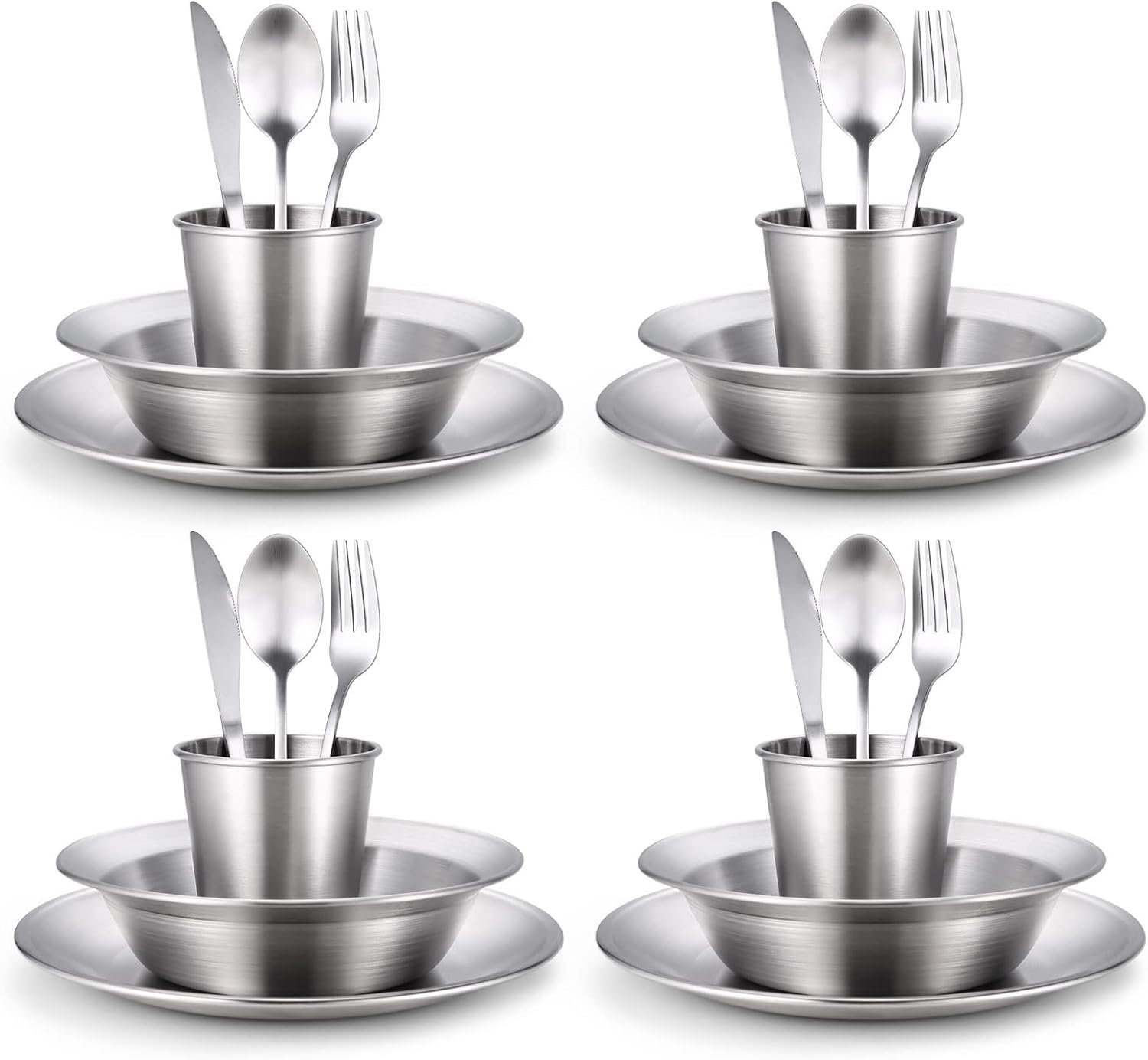 Todos los utensilios de cocina en un solo paquete El juego portátil de platos, tazas y cuencos para acampar con paquete de almacenamiento incluye 4 x platos, 4 x tazas, 4 x cuencos, 4 x juego de cubiertos para cena (4 x cucharas, 4 x tenedores, 4 x cuchillos), 1 x estuche de viaje. Kit de comida portátil y ligero, perfecto para disfrutar del campamento al aire libre y actividades con familia, amigos y colegas Alto kit de camping premium Hecho de acero inoxidable de grado alimenticio, los utensilios de cocina son no tóxicos y son duraderos y de larga duración Fácil de limpiar y apto para lavavajillas El juego de cocina de campamento es compacto y está diseñado para ayudar a que la limpieza sea un proceso rápido y sencillo. Además, es apto para lavavajillas para una fácil limpieza Conveniente y fácil de almacenar: bolsa compacta con cremallera, almacenamiento compacto y organización rápida. Los utensilios de cocina para acampar son ligeros y portátiles, por lo que puedes llevarlos fácilmente al aire libre cuando hagas senderismo, viajes, picnics o cocinas en campamentos Disfruta de cocinar en cualquier lugar que vayas El juego de cubiertos, enseres y equipo de Odoland está diseñado para alguien que ama acampar al aire libre con familias y amigos! Es muy portátil, lo que lo hace mucho más conveniente para acampar, hacer senderismo, ir de mochilero, hacer picnic y otras actividades al aire libre