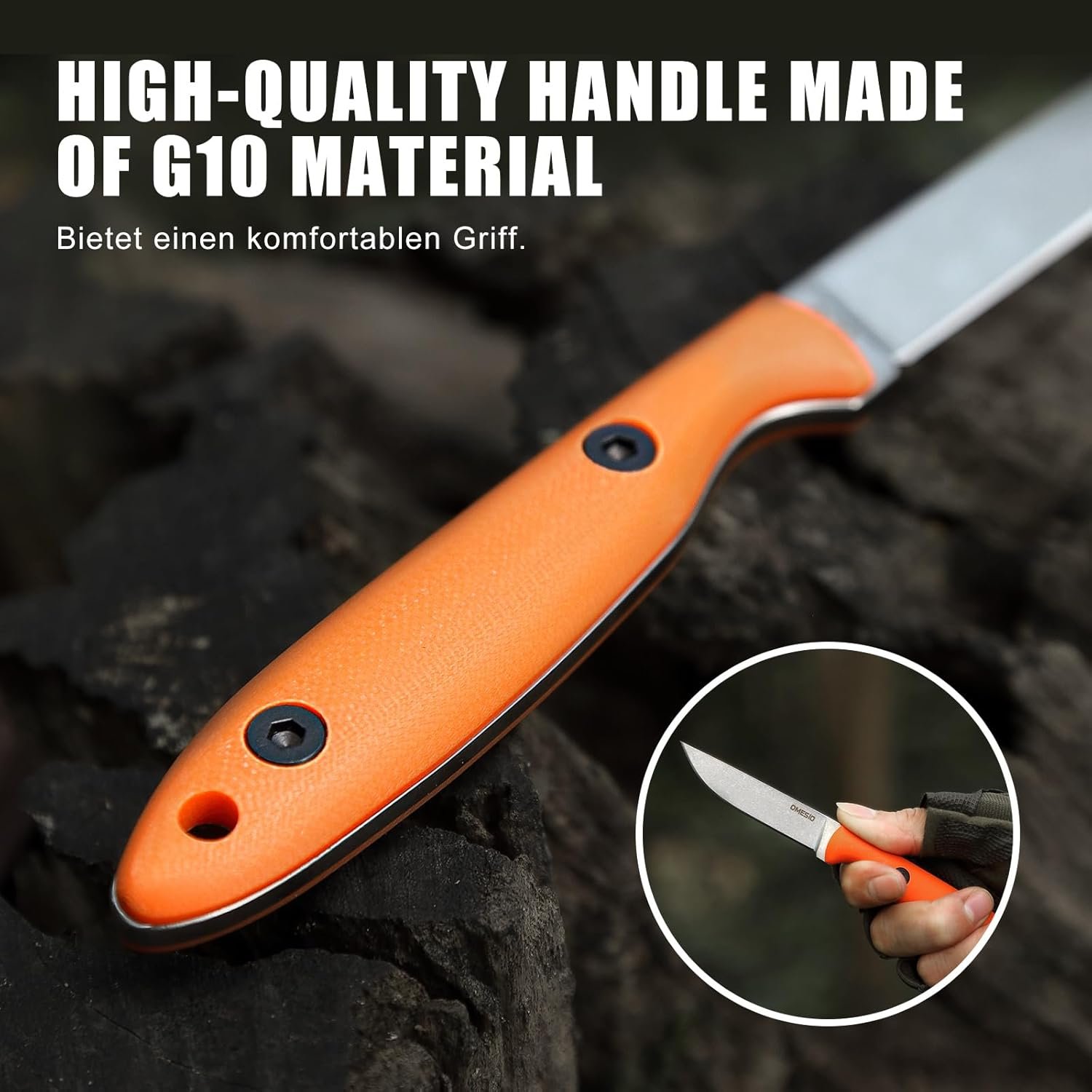 Hoja de acero DC53: la hoja del cuchillo de hoja fija Omesio con funda está hecha de acero DC53 de alta calidad para una excelente retención de bordes y nitidez, por lo que es ideal para exteriores, camping, bushcraft y caza. Mango ergonómico G10: el mango G10 de estos cuchillos de hoja fija para acampar proporciona un agarre cómodo y es antideslizante, resistente a la corrosión y a la abrasión. El pequeño cuchillo de hoja fija facilita una variedad de tareas al aire libre, como desollar y cortar. Fácil de transportar: el cuchillo táctico de hoja fija con funda kydex mantiene el cuchillo firmemente en su lugar, asegurando que se almacena y protege. El agujero del cordón y el clip ajustable hacen que sea fácil de llevar de varias maneras, desde aventuras al aire libre hasta el uso diario. Información del producto: cuchillo de hoja fija EDC longitud total: 18,0 cm (7.1 in) / longitud de la hoja: 7,5 cm (3.0 in) / grosor de la hoja: 0.079 in / peso: 5 onzas (5.01 oz) Uso versátil: este cuchillo de espiga completa con funda es el cuchillo táctico de hoja fija perfecto para los entusiastas del aire libre, capaz de una amplia gama de tareas de corte, ideal como cuchillo de camping, cuchillo de bushcraft, cuchillo de pesca, cuchillo de senderismo o cuchillo de caza.