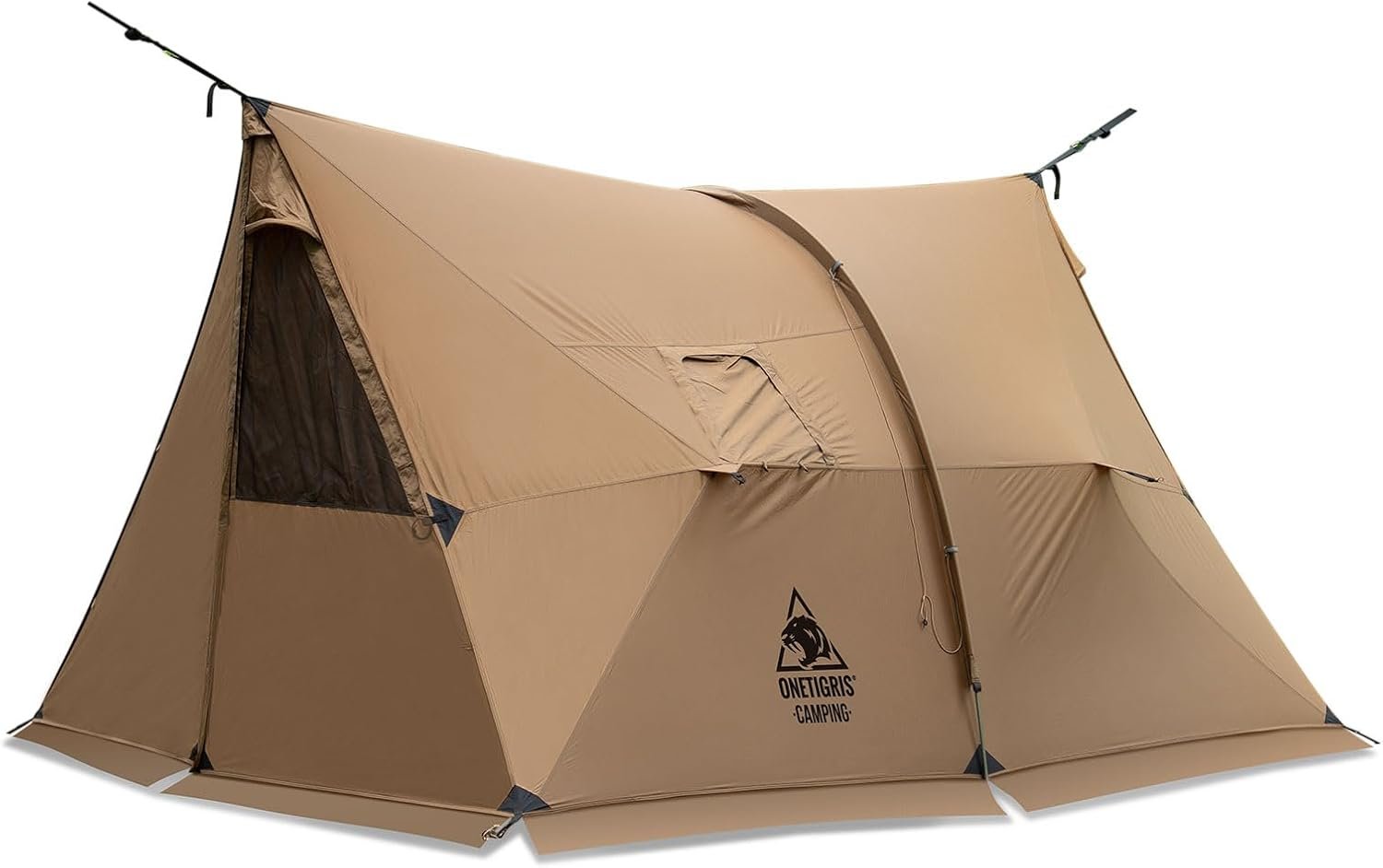Revestimiento de silicona 70D y nailon recubierto de poliuretano Importado Un poste de soporte central hace que esta tienda de campaña sea fuerte y espaciosa, resiste el colapso lateral y proporciona más espacio para la cabeza y resistencia al viento, puede dormir cómodamente hasta 4 campistas Tela de nailon recubierta de silicona 70D y revestimiento de poliuretano que es gruesa y duradera, nuestro refugio para embarcaciones proporciona una calificación de impermeabilidad de 118.110 in, cremalleras YKK impermeables sin enganches que evitan fugas para garantizar un interior seco y seguro incluso en lluvia intensa Fácil de montar: configúralo con árboles como un refugio de lona, te permite colgar una hamaca de camping en el interior con una estufa ardiente; viene con estacas resistentes y postes de tienda de campaña para que esté listo para terrenos ásperos y terrenos planos como una tienda de campaña de marco Dimensiones de 11.15 pies x 8.86 pies x 6.56 pies (133.9 in x 106.3 in x 78.7 in), esta tienda de campaña se adapta a todas las hamacas estándar y con toneladas de espacio para dormir cómodamente de 2 a 4 personas con su equipo más una estufa de tienda de campaña Ventanas de malla con solapa para flujo de aire y visibilidad sin comprometer el calor; bucles de engranaje de alta visibilidad para luces o correa de engranajes en el interior, y entradas con cremallera para suspensión de hamaca que pasa; correa incorporada + hebilla + configuración de mosquetón para un paso rápido y ajustable entre árboles El paquete incluye el refugio, líneas de sujeción, estacas de tienda, postes de tienda, correas de árbol, gato de estufa, un saco de cosas con asas de transporte, todo convenientemente empaquetado en un tamaño compacto de 50,0 cm x 20,1 cm x 18,0 cm (19.7 in x 7.9 in x 7.1 in) para un fácil transporte, con un peso de 14.7 libras (14.8 lbs)