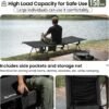 Resistente al desgarro: esta cuna plegable está fabricada con tela Oxford 300D que hace que sea resistente, antidesgarros y resistente al agua, las barras y patas de aluminio 7075 de grado aeronáutico soportan firmemente que la cuna se vuelque mientras está sentada y duerme, lo suficientemente resistente y estable como para soportar hasta 330 libras (330.7 lbs) Cama de campamento – Nuestra cama de campamento proporciona 2 opciones de altura con las 12 patas extensibles, 40,0 cm (15.7 in) para una altura más alta, perfecta para usar en césped o suelo fangoso o húmedo, o como un banco para sentarse; altura inferior de 15,0 cm (5.9 in) para usar como una cuna de tienda de campaña o en suelo sólido, ahorra tu espalda. de dormir en el áspero o suelo frío/húmedo para la mejor experiencia de sueño al aire libre El nuevo mecanismo de bloqueo de palanca de diseño hace que la instalación sea muy rápida y fácil, puedes terminarlo en cuestión de minutos Fácil acceso: un bolsillo lateral para poner tus dispositivos para un fácil acceso, teléfono, cargador de batería, aperitivos, equipo de cámara, kit de emergencia, etc. Y una red de almacenamiento debajo de la cama de campamento para tu ropa, sombreros o lavandería, lo que es muy práctico Tamaño de 190,0 cm de largo x 69,8 cm de ancho, más ancho que la mayoría de las cunas plegables y, por supuesto, más cómodo Fácil de guardar: viene con una bolsa grande para un fácil almacenamiento y transporte, ideal para camping, senderismo, senderismo, viajes, pesca, canoa, camión, uso en interiores, etc