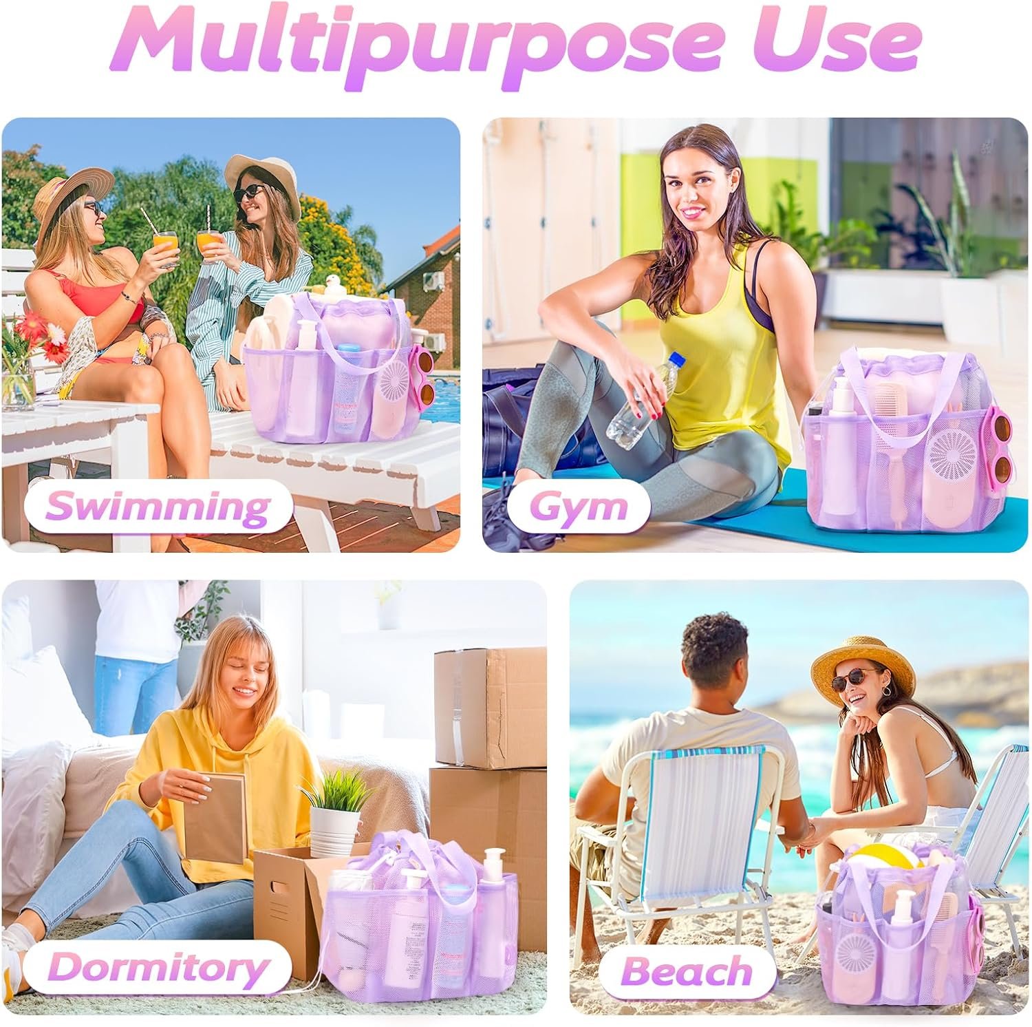 Innovador cierre de cordón: la bolsa de ducha cuenta con un diseño de cierre de cordón, evitando que los artículos se derramen y garantiza su seguridad. Amplio almacenamiento con 8 bolsillos: con dimensiones de 27,9 cm x 25,1 cm x 25,1 cm, este organizador de ducha portátil destaca por ofrecer un amplio espacio para ropa, toallas y artículos esenciales de baño en un práctico paquete. Con 8 bolsillos espaciosos, permite una organización ordenada de varios artículos esenciales de baño para un fácil acceso. Durabilidad y artesanía de alta calidad: fabricado con malla de alta calidad y costuras precisas, este organizador de baño puede soportar hasta 60 libras, asegurando una durabilidad duradera para años de uso sin preocupaciones. Fácil de limpiar y secado rápido El material de malla facilita un rápido drenaje y secado del agua, asegurando la limpieza y preparación para tu próximo uso con sus propiedades lavables y de secado rápido. Utilidad versátil Ideal para dormitorio y lo suficientemente versátil para acampar, sesiones de gimnasio, natación, viajes, salidas a la playa y más, este organizador de ducha es una solución versátil para diversas necesidades. organizador de ducha dormitorio