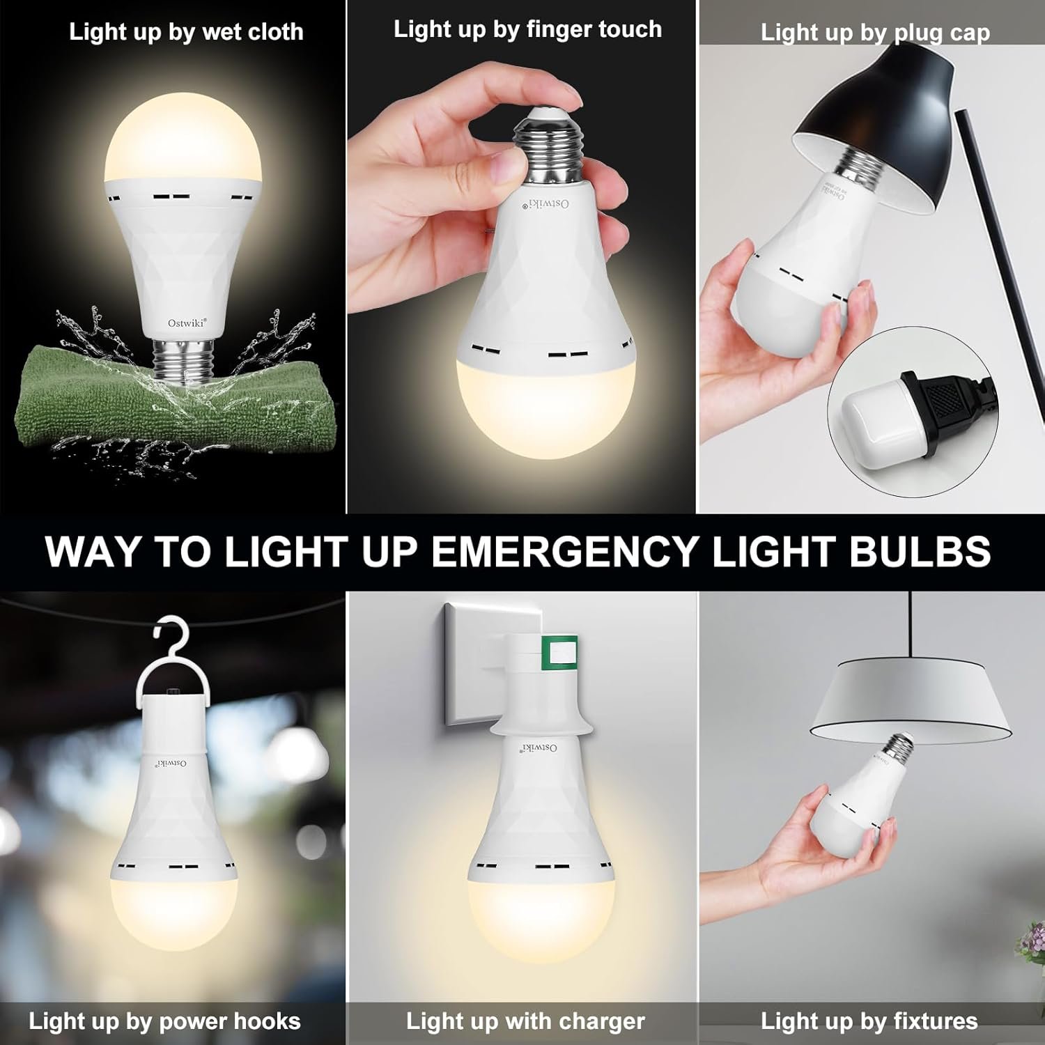 Ostwiki Paquete de 10 bombillas de emergencia recargables de 3000 K, bombillas de luz alimentadas por batería, bombillas cálidas
