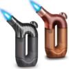 Encendedor de antorcha de llama individual: nuestro encendedor de antorcha chorro una sola llama azul que enciende rápidamente cualquier cosa. La llama de un solo chorro es más concentrada y más eficiente en combustible que las llamas de chorro doble o triple. La llama fuerte también puede resistir la interferencia del viento, y se puede utilizar con confianza al aire libre Estilo único cmO cm y fácil de usar: a diferencia de otros encendedores de plástico, este encendedor cuenta con una robusta parte superior de aleación de zinc y un cuerpo de goma ABS gruesa de alta calidad, proporcionando durabilidad y un acabado suave y texturizado. Se puede sostener perfectamente debido a su tamaño de la palma (9,9 cm x 4,6 cm x 1,8 cm/0.2 libras). Con un diseño ergonómico para caber en tu mano, puedes usarlo cómodamente durante mucho tiempo Depósito de combustible visible en forma de U: con un tanque de gasolina transparente, puedes controlar fácilmente el nivel de butano de un vistazo. Gran depósito de combustible con capacidad de 0.28 oz, garantiza que cada recarga dure mucho tiempo. (NOTA: Para la seguridad sin residuos, el tanque puede aceptar solo el 85% de capacidad de butano. El sobrellenado puede causar salpicaduras de butano) Recargable y ajustable: en comparación con los encendedores desechables, simplemente obtén este encendedor de butano recargable y elige un recipiente de gas butano para rellenarlo. En el anillo exterior del puerto de recarga de combustible está el regulador de llama, puedes ajustar fácilmente el tamaño de la llama de acuerdo a tus preferencias Encendedor versátil con encendido sencillo: suave acción única en el gatillo de encendido. Solo necesitas usarlo con una mano. Presiónelo para obtener la llama y suéltelo para apagarlo. Es lo suficientemente versátil para iluminar barbacoas, parrillas, estufas, exteriores y mucho más. Ya sea que estés en casa o en movimiento, es tu compañero confiable
