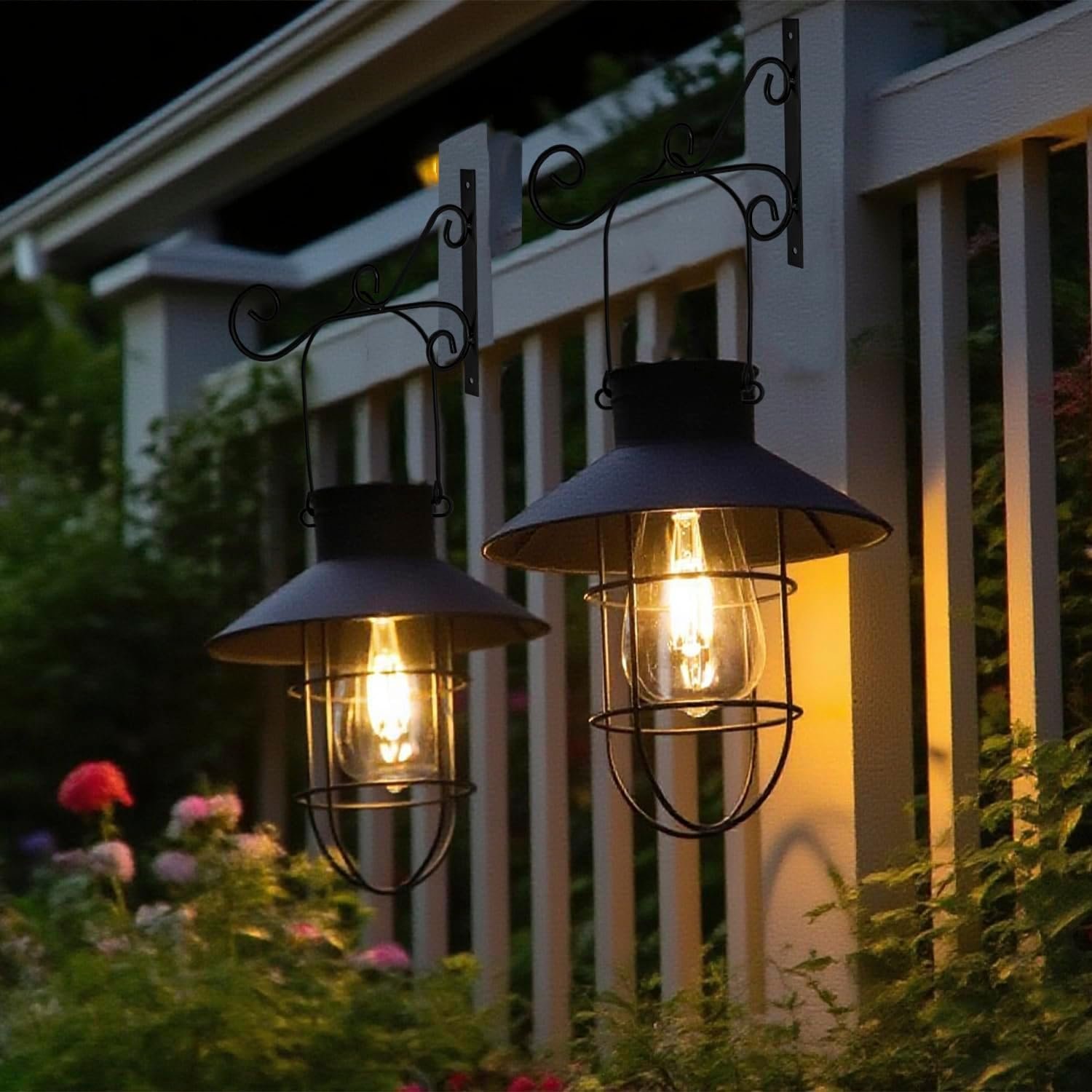 Paquete de 2 faroles solares colgantes impermeables de metal