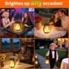 Opciones de carga solar y USB: estas luces colgantes alimentadas por energía solar cuentan con una solución de carga de modo doble, que ofrece opciones de carga USB y solar. La carga USB tarda solo cuatro horas, mientras que la carga solar requiere ocho horas de luz solar. Esto garantiza un rendimiento confiable, incluso en días nublados o lluviosos Encendido y apagado automático: estas luces solares para exteriores imitan llamas reales, produciendo un efecto de parpadeo increíblemente realista. Están equipados con sensores de luz integrados y se encienden automáticamente al anochecer y se apagan al amanecer. Resistencia a todo tipo de clima y resistentes: estas luces impermeables para exteriores alimentadas por energía solar tienen una clasificación IP65, lo que significa que pueden soportar condiciones climáticas adversas. Son ideales para decorar tu jardín o patio para Halloween o Navidad, ya que están protegidos contra la lluvia, la nieve, las heladas y el aguanieve. Dos modos de iluminación: estas luces solares de jardín cuentan con un modo de parpadeo de llama y un modo de encendido constante. Simplemente pulsa un botón para cambiar entre modos e iluminar tu jardín con un encanto único, creando un ambiente cálido y romántico. Fácil instalación y decoración versátil Estas luces solares de camino son fáciles de instalar y se pueden utilizar para decorar espacios interiores y exteriores. Gracias a su cuerda de cáñamo portátil, se pueden colgar de paredes, ramas de árboles, porches, o colocar en el suelo, mesas o escalones.