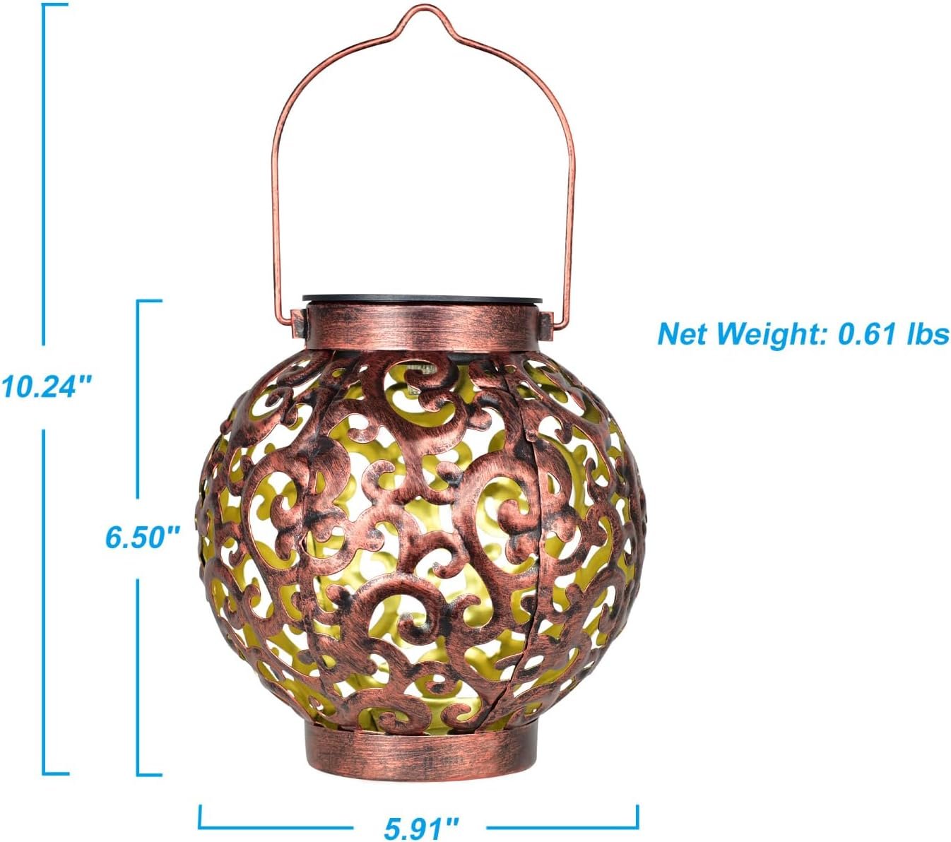 Crea un ambiente retro y elegante a tu espacio al aire libre con esta linterna colgante solar. Puedes colgarlo o colocarlo sobre una superficie plana. Linterna de energía solar. Siempre y cuando enciendas el interruptor, puede absorber automáticamente la luz solar durante el día y emitir luces cuando el ambiente está oscuro. La carga a pleno sol durante 6-8 horas puede funcionar hasta 8 horas. Resistente a la intemperiHecho de metal y plástico. Interruptor deslizante de encendido/apagado. Requiere 1 batería recargable AA 1.2V 600mAh NiMh (incluida). El diseño inalámbrico hace que sea fácil de colgar en cualquier lugar exterior como patio, cenador, terraza, entrada, acera, pared, piscina. Cada pieza está bajo estricta inspección antes del envío. Si por alguna razón no estás satisfecho, háznoslo saber y te ayudaremos a devolver o reembolsar.