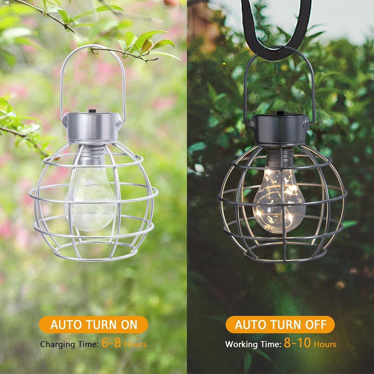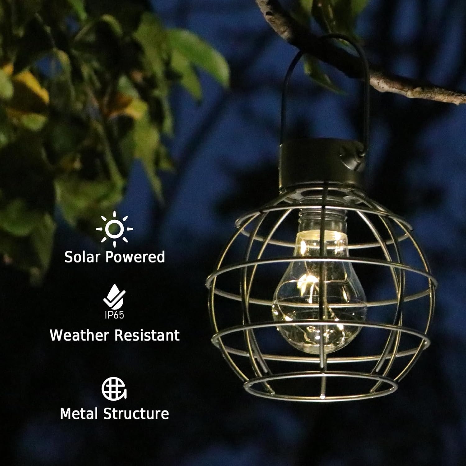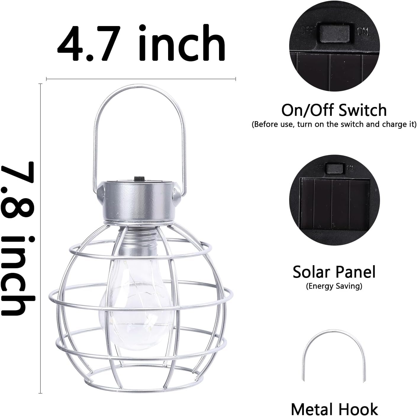 Luces solares de metal: las linternas solares colgantes están hechas de material de metal recubierto con luz de bombilla de plástico y gancho de metal resistente que hace que sea fácil de colgar de ramas, cuerdas y ganchos; las linternas solares colgantes para exteriores con luces cálidas brillantes crean un ambiente acogedor para jardín, camino, patio o porche, y adecuado para decoración interior y exterior Faroles colgantes alimentados por energía solar: las luces solares decorativas para exteriores absorben la luz solar para convertirse en electricidad, y se enciende automáticamente cuando está oscuro, se apaga automáticamente durante el día. Fácil de usar, no necesita cable (carga al sol, por favor, haz que su interruptor esté en posición cmencendida cm) Duradero y resistente al agua: las linternas solares para exteriores están hechas de material de metal duradero, y las linternas solares de luces cálidas son resistentes al óxido para soportar la lluvia o condiciones de viento, y el gancho de metal más fuerte puede evitar que la linterna solar colgante se caiga y se rompa Amplia aplicación: las linternas solares para exteriores tienen un hermoso diseño con luz LED cálida; colgarlas en un gancho o árbol en el patio puede crear un ambiente encantador para tu jardín. Además, también se puede utilizar como una luz decorativa en la mesa y el suelo del jardín Embalaje y servicio: el paquete incluye: 2 faroles solares colgantes con luces de hadas cálidas. Debe ser un regalo de hadas ideal para tu familia y amigos. Si tienes algún problema, no dudes en ponerte en contacto con nosotros, te proporcionaremos una solución perfecta