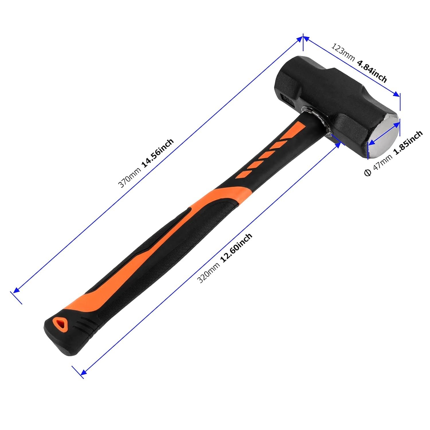 Construcción indestructible: hecha de acero de alto carbono resistente, la cabeza del martillo es fuerte y duradera después del tratamiento de templado. Los recubrimientos negros en la superficie hacen que el pequeño martillo de trineo de 4 libras sea altamente resistente al óxido y la corrosión para hacer frente al ambiente hostil. Mango ergonómico de fibra de vidrio: nuestro martillo de trineo de 4 libras cuenta con un mango largo de fibra de vidrio de 30,5 cm para agitar sin esfuerzo, lo que mantiene la vibración mucho en tus brazos y lo hace ideal para tareas repetidas de golpes. Las rayas y el naranja lo hacen antideslizante y altamente visible. Información detallada sobre el tamaño: recibirás 2 mini martillos de trineo con un tamaño de cabeza de martillo de 13,0 cm x 4,8 cm. El peso total de la cabeza del martillo más el mango es de 4.4 lbs. Este tamaño compacto y ligero hace que sea fácil de transportar o poner en una mochila o caja de herramientas de maletero para uso de respaldo. Una herramienta práctica para tareas pesadas: esta es una herramienta de hardware práctica y conveniente para muchas tareas, incluyendo estacas de conducción, conformado de metal, pernos de ajuste, rocas o demolición de hormigón. Nuestro martillo de trineo de 4 libras es ampliamente aplicable a mejoras del hogar, construcción, carpintería o tareas de jardinería, camping o exploración geológica. Garantía de devolución de dinero: prometemos proporcionarte un reembolso si encuentras algún problema con nuestros productos en 30 días para que puedas estar seguro de que tomas la decisión correcta. Si tiene alguna pregunta sobre nuestro martillo de club de 4 libras, no dude en ponerse en contacto con nosotros, y nos aseguraremos de brindar el mejor servicio.