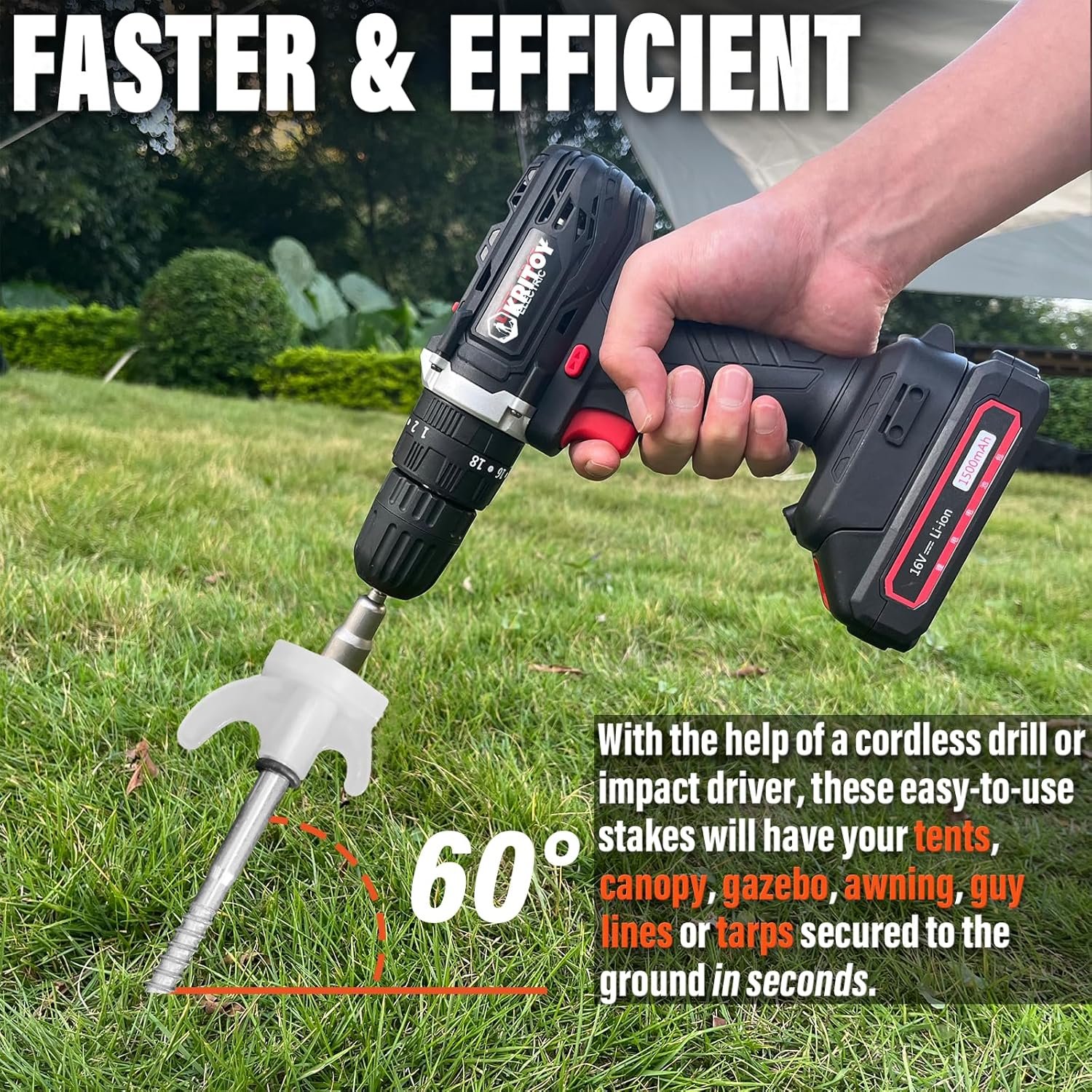 Fácil de usar Nuestras estacas de tienda de campaña se configuran más rápido para que puedas sentarte con una cerveza mientras ves a otros campistas luchar. Con la ayuda de un taladro inalámbrico o un destornillador de impacto, estas estacas fáciles de usar tendrán tus tiendas de campaña, toldo, cenador, toldo, líneas de sujeción o lonas aseguradas al suelo en cuestión de segundos. Alta calidad y duradero: hecho de acero de alta calidad con un extremo roscado para un fácil inserto y agarre superior al perforar en varias superficies duras. Ya sea césped, suelo duro, grava o cualquier cosa intermedia, se mantiene de forma segura. Brilla en la oscuridad La parte superior de la estaca brilla convenientemente en la oscuridad después de solo una breve exposición a la luz solar, evita tropiezos y es fácil de encontrar por la noche. Multiusos: ya sea que estés buscando asegurar tu tienda de campaña, toldo, toldo desplegable, toldo o incluso asegurar la correa de tu perro, decoraciones de Navidad, decoraciones de Año Nuevo, estacas perforables te tienen cubierto. Bonificación Práctico estuche de transporte y broca hexagonal de 1,3 cm.