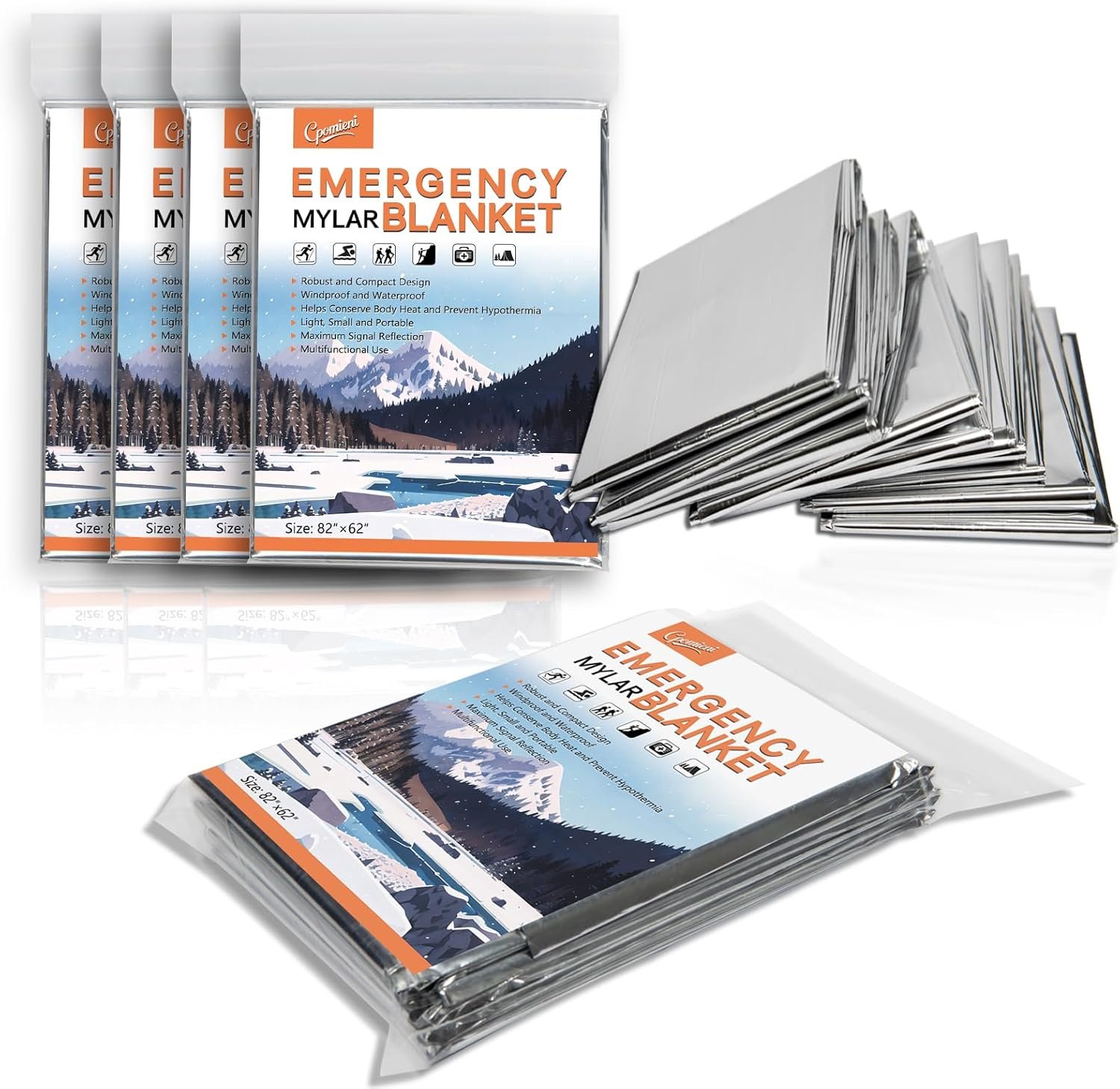 Componentes incluidos: Paquete de 4 mantas Mylar de emergencia