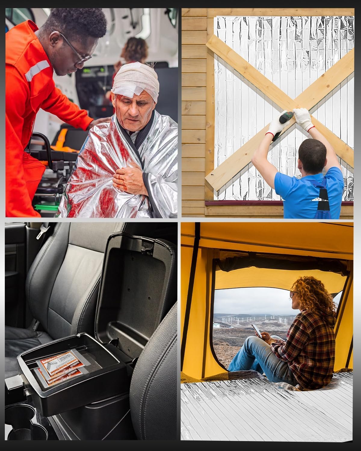 Manta térmica de emergencia para supervivencia: diseñada con Mylar aluminizado de grado aeroespacial, retiene el 90% del calor corporal para evitar la hipotermia durante la supervivencia al aire libre, emergencias automovilísticas o tormentas repentinas. Mantas Mylar con refuerzo de PET: material resistente al desgarro de 15 m + rejilla antienganches que soporta campamentos y senderismo resistentes, resolviendo quejas de los usuarios del 35% sobre mantas de emergencia frágiles. Paquete de 5 mantas de emergencia a granel: kits de preparación familiar sellados individualmente para guanteras, mochilas y equipo de supervivencia, ideal para donaciones benéficas o aventuras grupales. Manta de emergencia portátil de tamaño tarjeta de crédito: con un peso de 2 oz y plegable a 7,6 cm x 12,7 cm (más pequeña que los teléfonos), se desliza en kits de emergencia o carteras para un acceso instantáneo. Manta espacial impermeable para uso en todo tipo de clima: capa exterior resistente al viento + costuras impermeables que crean refugio de emergencia o barrera térmica durante tormentas de nieve.