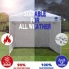 Amplios usos: utiliza la pared lateral con tu toldo en cualquier parte, como venta en la calle o acampadas con vehículos. Material duradero: nuestra pared lateral está hecha de poliéster 210D con capas multifuncionales a prueba de agua. Dimensiones: la pared lateral mide 299,7 cm x 218,4 cm; adecuada para la mayoría de los toldos desplegables de 10 x 10 pies. Instrucciones de instalación: ata tu toldo firmemente con las largas correas de velcro en la parte superior y velcro adhesivo en los costados. Incluye: solo 3 paredes laterales. El toldo no está incluido.