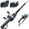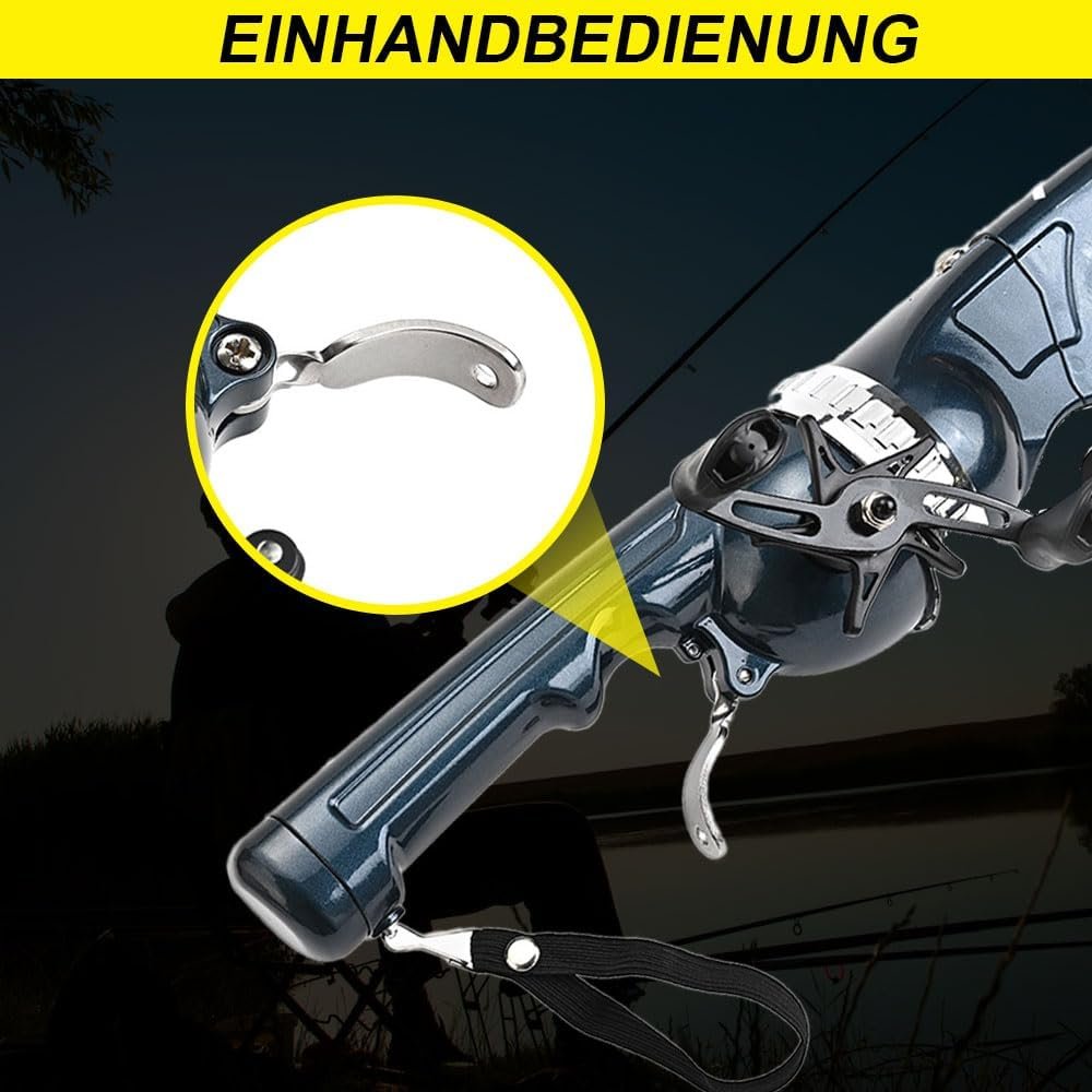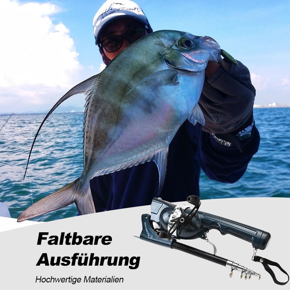 Paquete versátil todo en uno: este juego de cañas de cebo incorpora una caña de pescar plegable y un carrete completo con hilo de pescar, agrupando todos los elementos esenciales en un práctico kit. Su elegante diseño garantiza la portabilidad y facilidad de uso, atendiendo perfectamente a diversas expediciones de pesca. Materiales de primera calidad y tamaño compacto: hecho de material de metales robustos, el carrete de pesca garantiza longevidad y rendimiento duradero. La varilla, compuesta de plástico de fibra de carbono, se extiende hasta 4.3 ft/131,1 cm y se retrae a solo 9.1 in/23,0 cm, lo que facilita el transporte y almacenamiento sin esfuerzo. Mango extendido innovador: con un diseño único de mango extendido, esta barra ofrece funcionalidad adicional. Simplemente tirando hacia abajo del cinturón negro debajo del mango, se revela espacio de almacenamiento adicional para ganchos, cebos y pequeños accesorios de pesca. Retirar el mango es igualmente simple: todo lo que se necesita es tirar del cinturón negro una vez más Práctico mecanismo de plegado: dobla la varilla sin esfuerzo agarrando el mango con una mano y presionando hacia abajo la columna del asiento de resorte conectada con el pulgar. Envuelve de forma segura el cinturón elástico alrededor del anillo colgante para un almacenamiento compacto. Este mecanismo asegura que la varilla permanezca manejable y fácilmente almacenable cuando no esté en uso. Gestión de línea sin esfuerzo: operar la línea es muy fácil: sujeta el mango con una mano y activa el gatillo con tu dedo índice para liberar la línea. Con la otra mano, tira de la línea del carrete y estarás listo para lanzar. Este diseño intuitivo optimiza la experiencia de pesca para principiantes y pescadores experimentados por igual, eliminando molestias innecesarias.