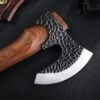 Hacha de cuchillo de caza al aire libre con barba profunda Martillo de acero inoxidable 5Cr15 Patteren África Sandalia madera Longitud total: 11.0 in cabeza de hacha: 10,4 cm x 9,9 cm, muy afilada y dura Viene con funda de cuero y caja Ideal para caza, campamento y actividades al aire libre